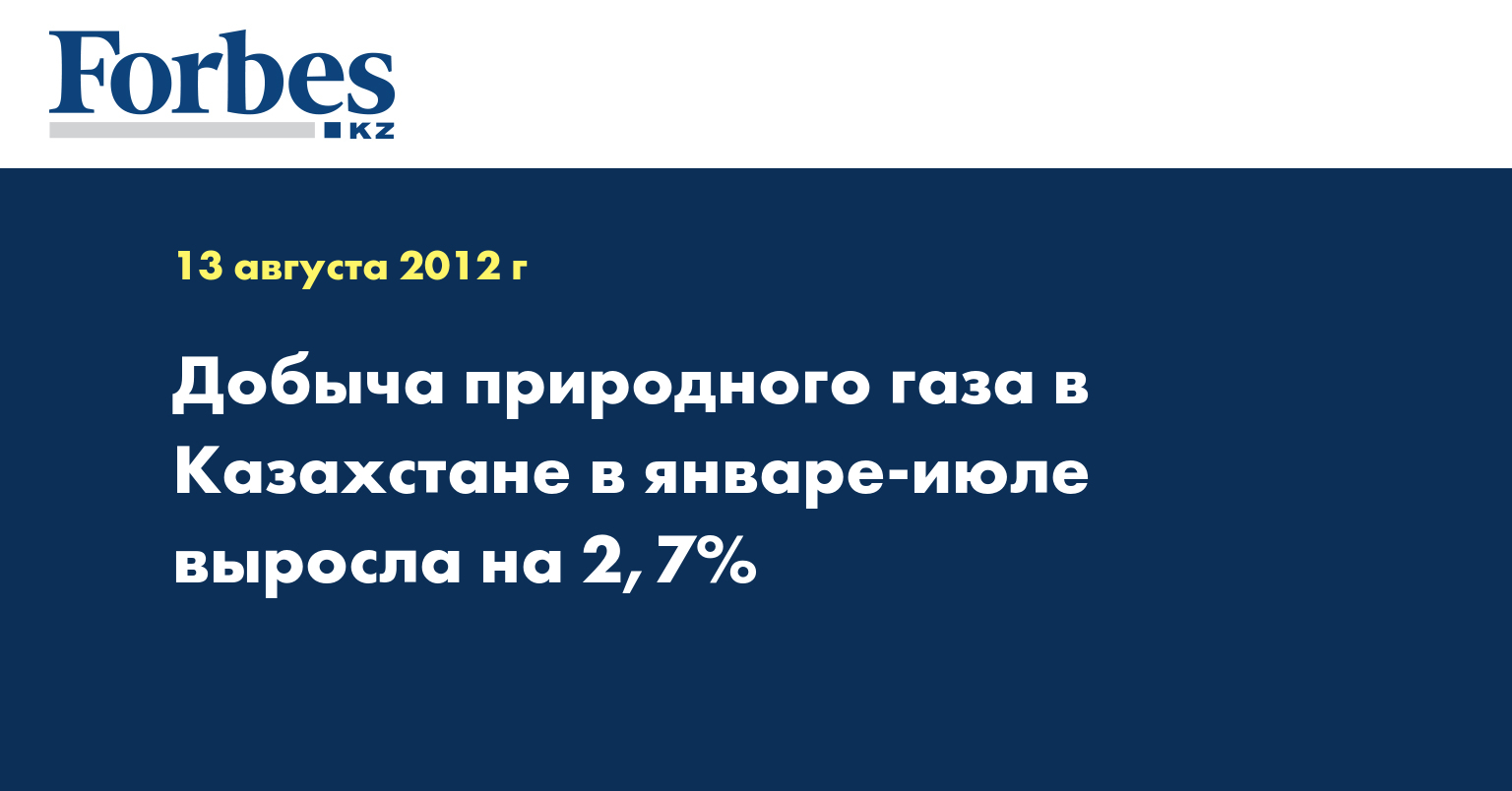 Добыча природного газа в Казахстане в январе-июле составила 23,9 млрд куб. м, что на 2,7% больше, чем в соответствующем периоде 2011 года, указывается в сообщении агентства РК по статистике, передает КазТАГ.