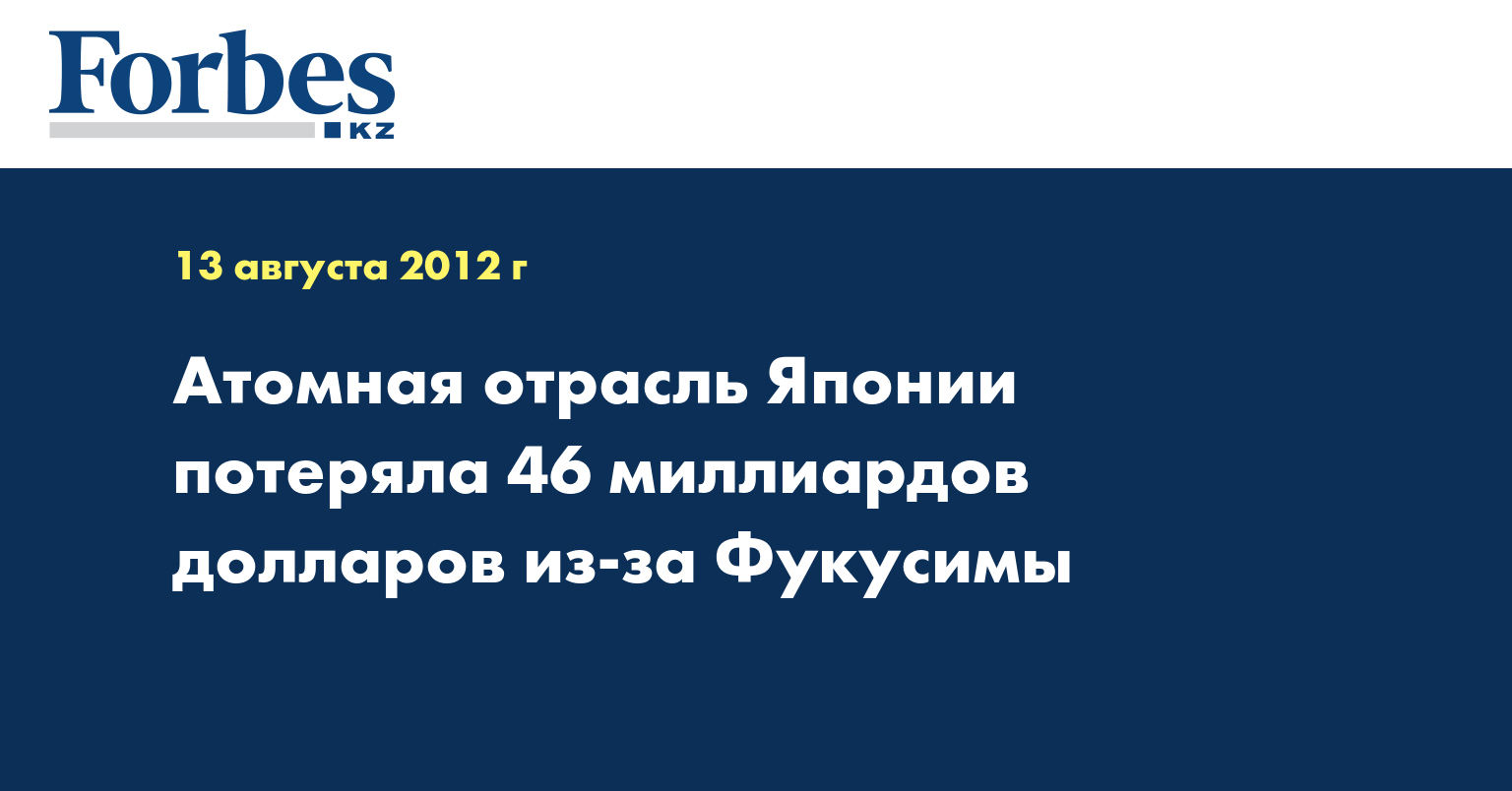 Убытки японской атомной энергетики после аварии на станции в Фукусиме в марте 2011 года составили 46 миллиардов долларов, сообщает Bloomberg. В целом сумма потерь, понесенных производителями электро- и тепловой энергии примерно равна всей прибыли, полученной этими же компаниями в период с 2004 по 2010 год, передает Lenta.ru.
