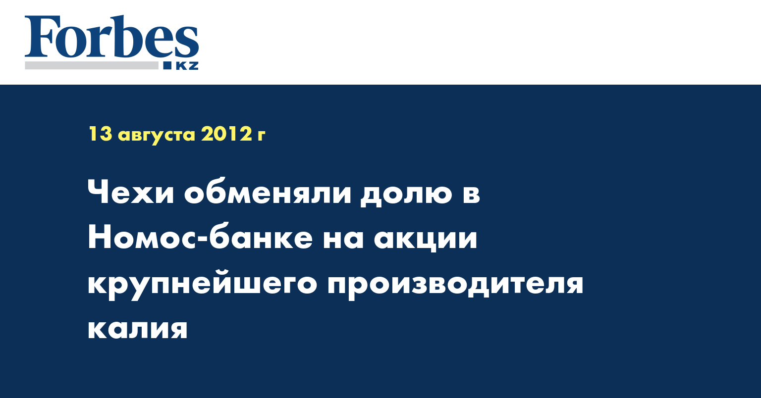 Чешская группа PPF в рамках продажи пакета принадлежавших ей акций Номос-банка получила от корпорации "Открытие" ценные бумаги компании "Уралкалий". Об этом сообщается в пресс-релизе "Открытия", передает КазТАГ.