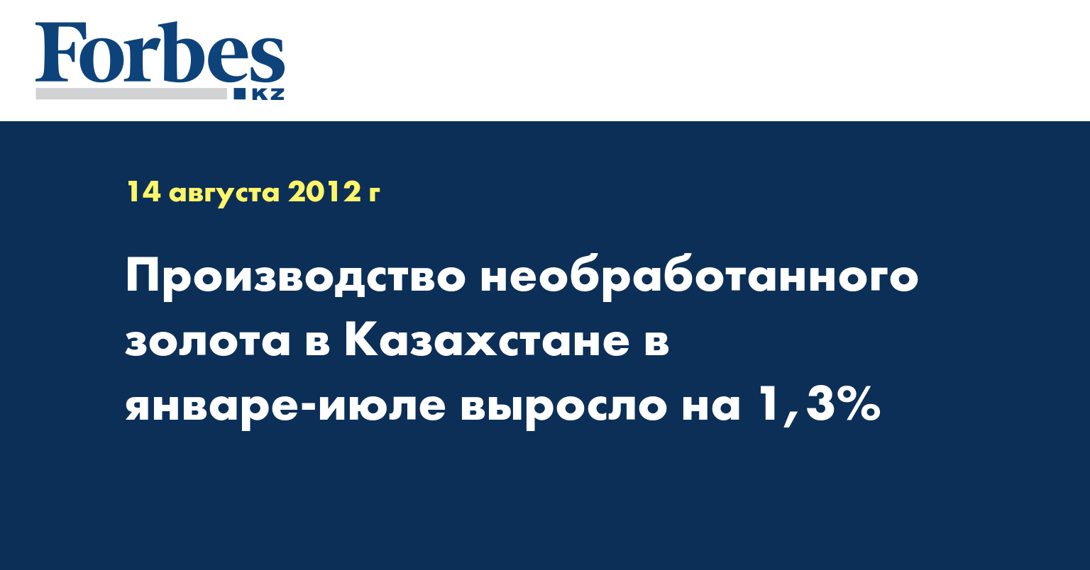 Производство необработанного золота в Казахстане в январе-июле составило 21 814 кг, что на 1,3% больше, чем в соответствующем периоде 2011 года, указывается в ежемесячном отчете агентства РК по статистике.