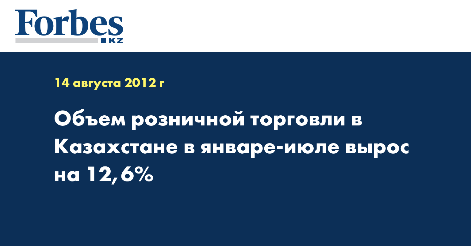 Объем розничной торговли в Казахстане в январе-июле составил Т2,276 трлн (без учета оборота общественного питания) и увеличился на 12,6% по сравнению с аналогичным периодом 2011 года, указывается в ежемесячном отчете агентства РК по статистике, передает КазТАГ.