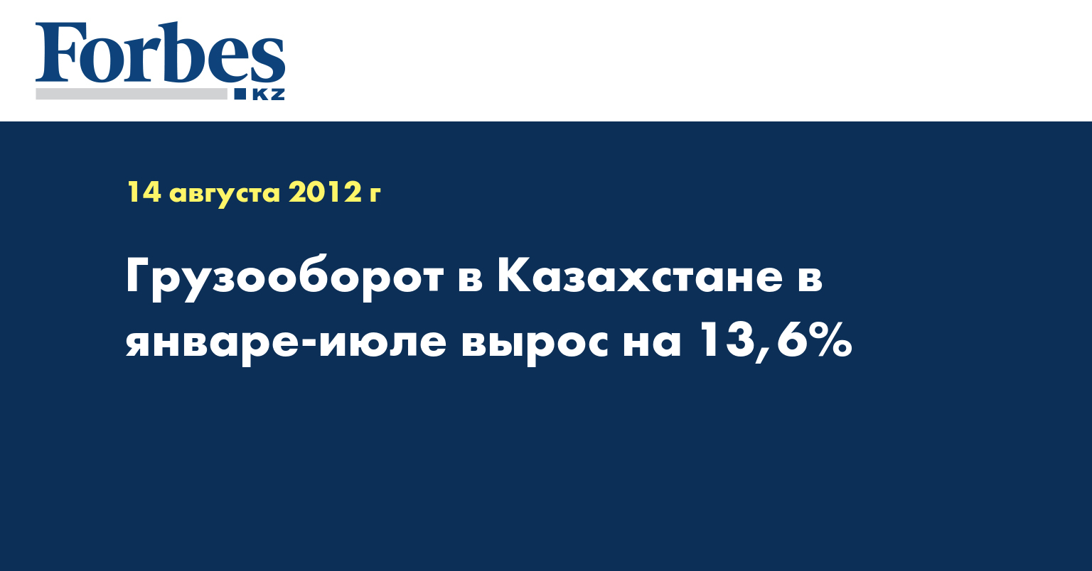 Объем грузооборота в Казахстане в январе-июле составил 263,012 млрд т/км, что на 13,6% больше, чем в соответствующем периоде 2011 года, указывается в ежемесячном отчете агентства РК по статистике, передает КазТАГ.