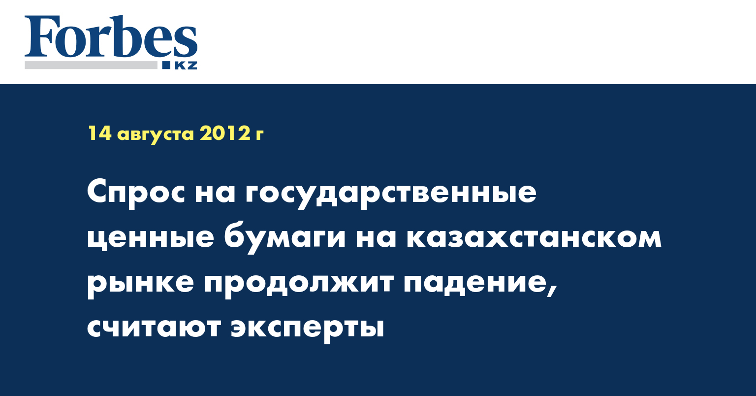 Спрос на государственные ценные бумаги (ГЦБ) со стороны участников казахстанского финансового рынка в ближайшее время, вероятнее всего, продолжит свое падение, считают эксперты АО «Инвестиционный финансовый дом (ИФД) «Resmi», передает КазТАГ.