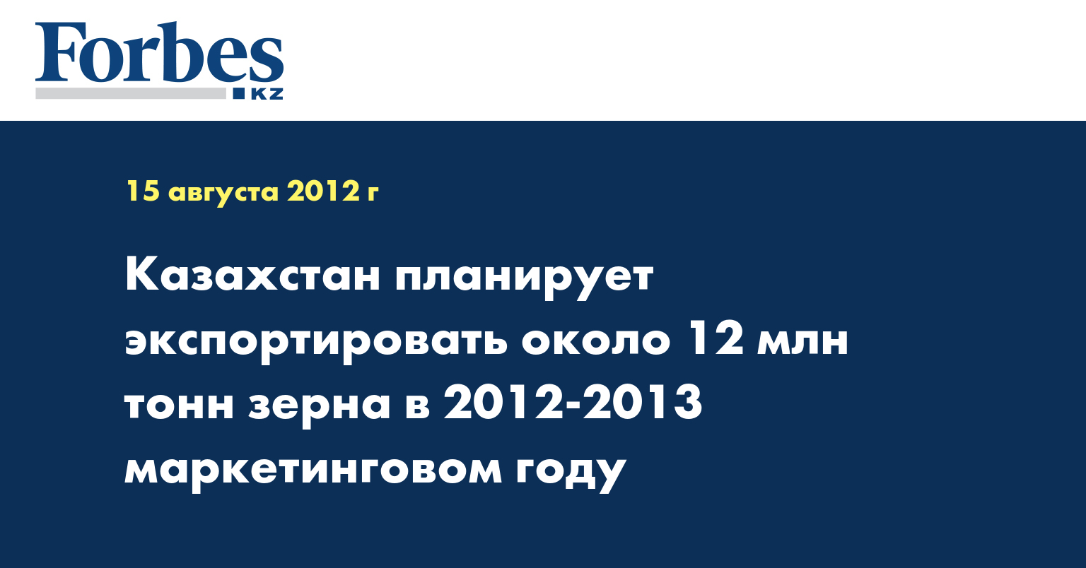 Казахстан планирует экспортировать около 12 млн тонн зерна в 2012-2013 маркетинговом году, сообщил ответственный секретарь министерства сельского хозяйства Евгений Аман.