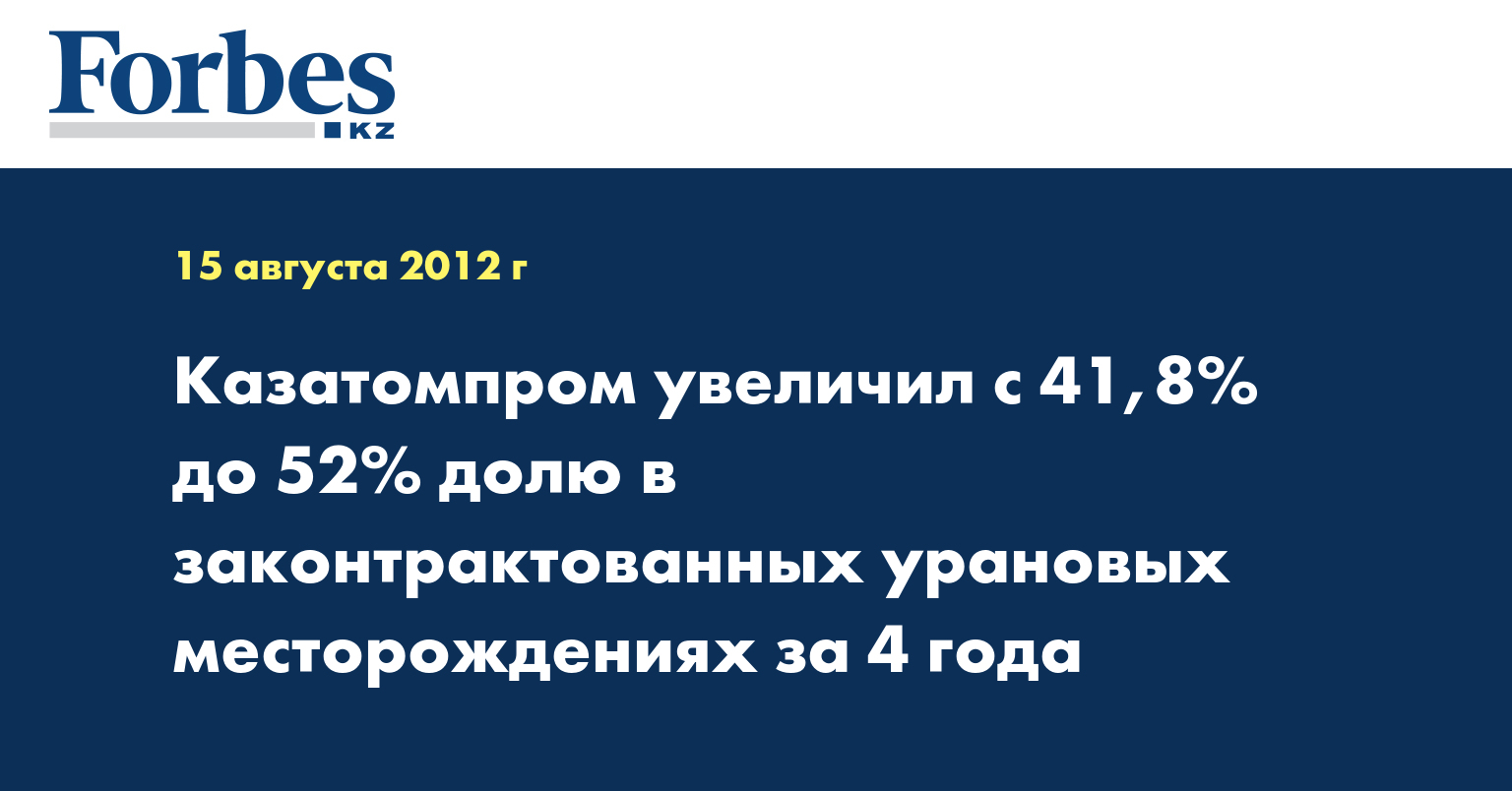 «В начале 2009 года 41,8% урановых месторождений принадлежало Казатомпрому из законтрактованных… Контракты были заключены с перекосами экономических интересов нашей страны. Все эти вещи были пересмотрены и к 2012 году доля законтрактованных запасов составила 52% вместо 42%. Дальнейшая стратегия - мы увеличим долю нашей компании в уже существующих контрактах», - сказал В.Школьник на пресс-конференции в среду.