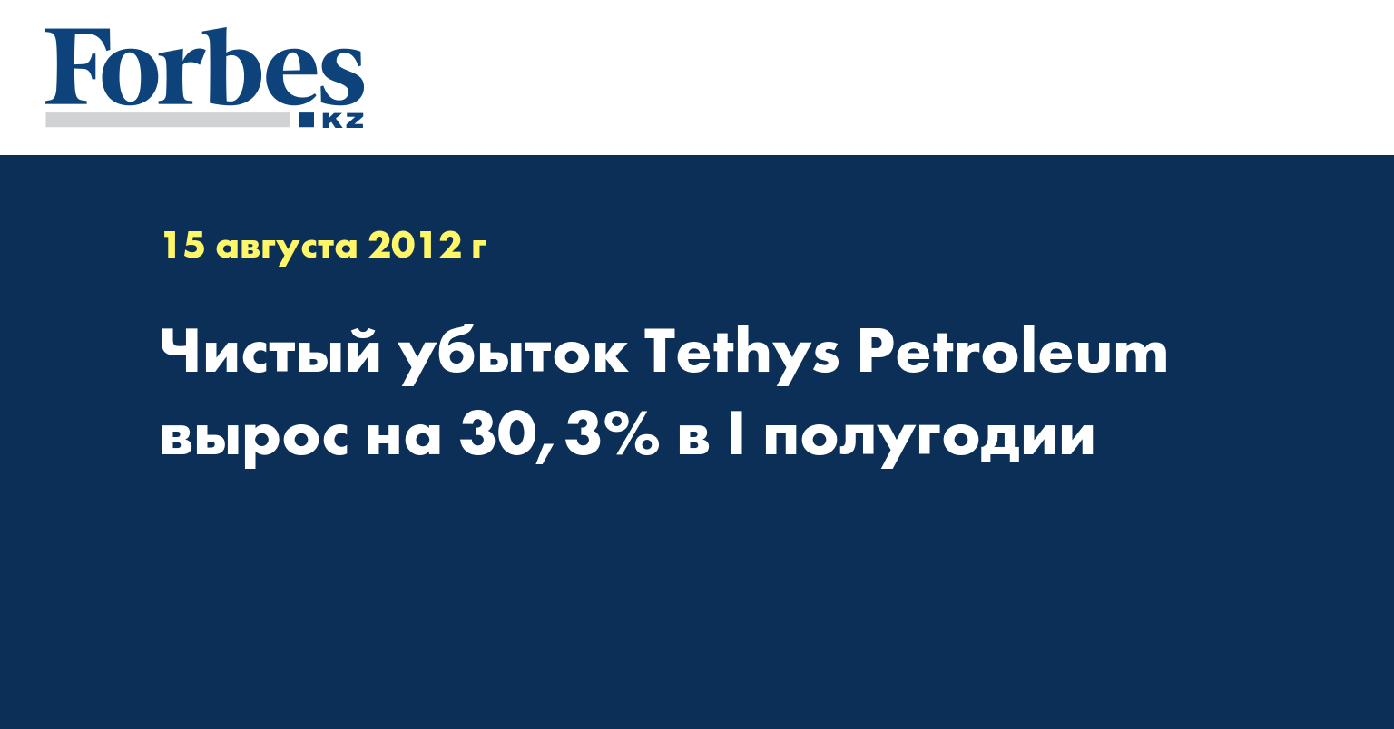 Чистый убыток Tethys Petroleum Limited в I полугодии составил $11,718 млн, что на 30,3% больше, чем в соответствующем периоде 2011 года, указывается в сообщении компании, как передает КазТАГ.