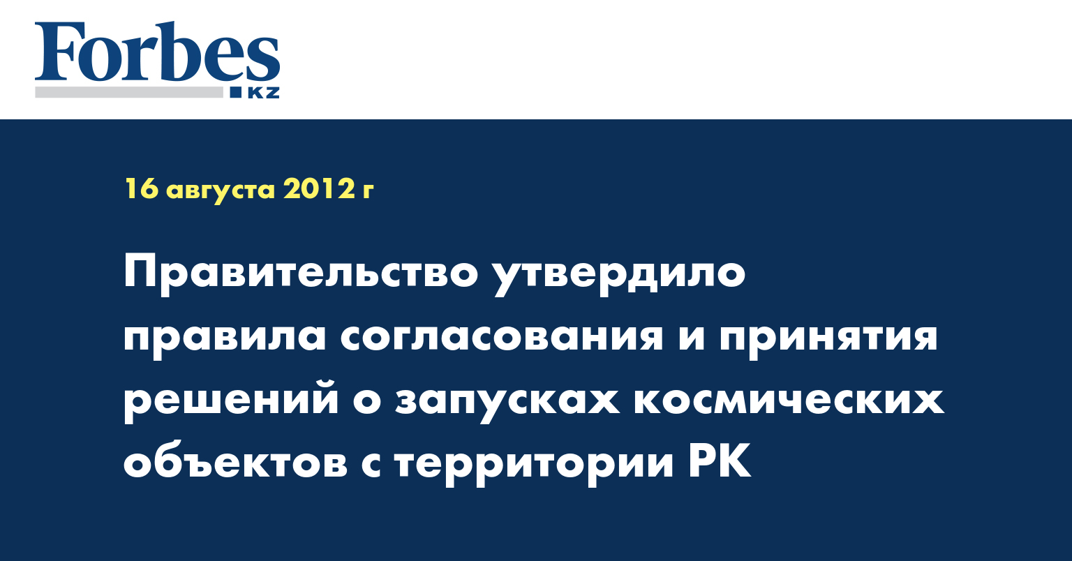 Согласно постановлению, участники космической деятельности, планирующие осуществить запуск космического объекта с территории РК, а также казахстанские участники космической деятельности, планирующие осуществить запуск за пределами Казахстана, письменно обращаются в уполномоченный орган не позднее, чем за 90 календарных дней до планируемой даты запуска, с соответствующей заявкой.