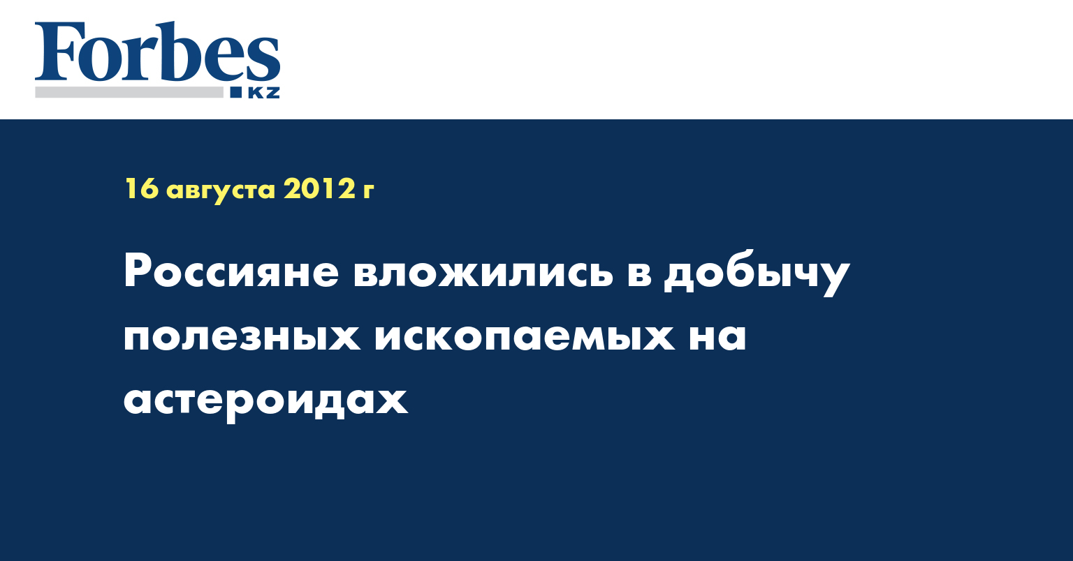 Управляющая компания с российским участием I2BF Global Ventures стала инвестором проекта Planetary Resources, который будет заниматься добычей полезных ископаемых на астероидах. Об этом сообщается в пресс-релизе I2BF Global Ventures, передает lenta.ru.