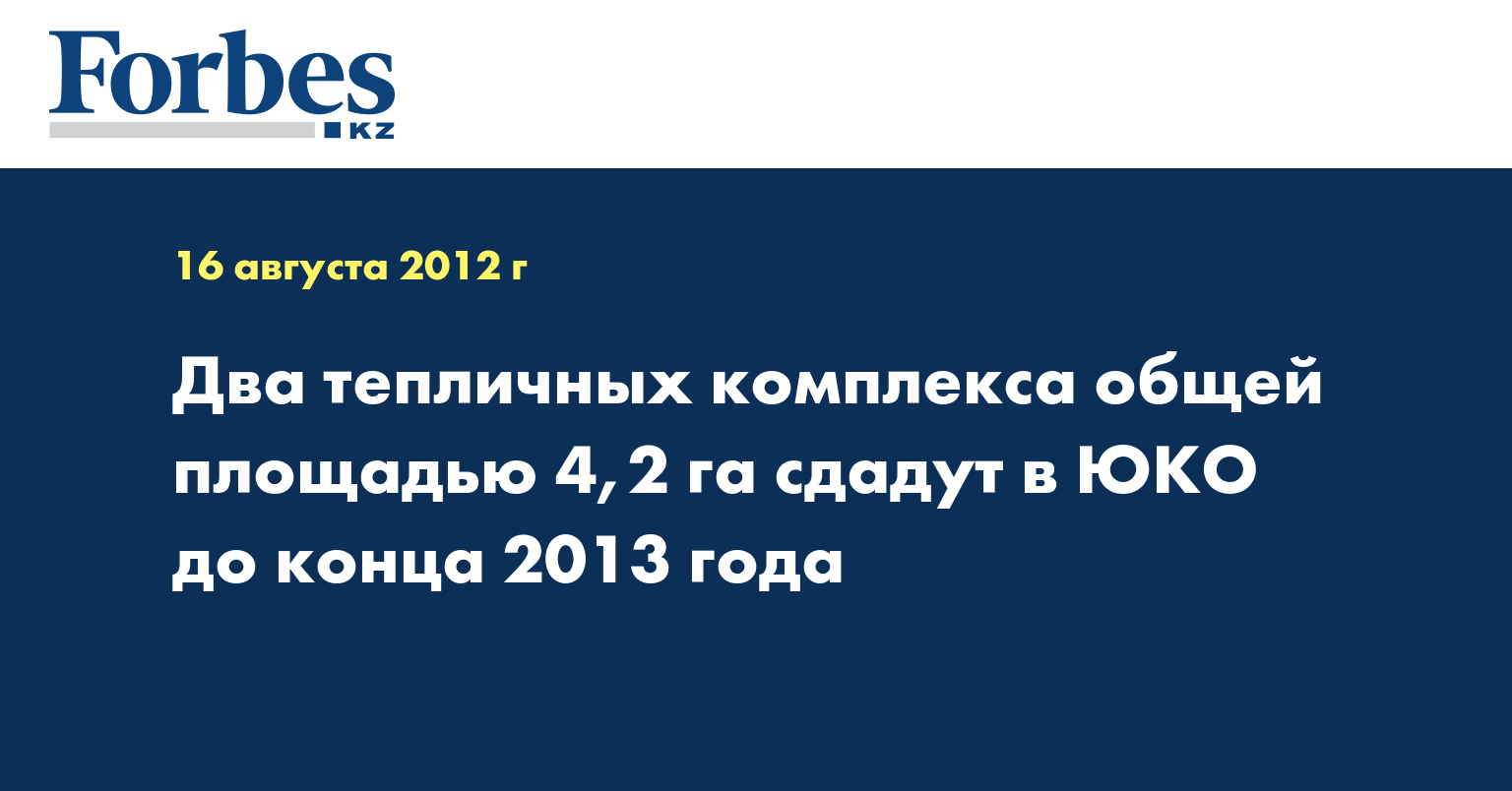 «В нынешнем и 2013 году планируется завершить строительство 2-х современных тепличных комплексов в Южно-Казахстанской области - ТОО «СЗЦ Асар KZ» площадью 2,2 га для выращивания 350 тонн томатов и 5 млн штук рассады, а также ИП «Ифтихари Ф.А.» на 2 га под 790 тонн овощной продукции в год», - указывается в информации, распространенной в четверг.