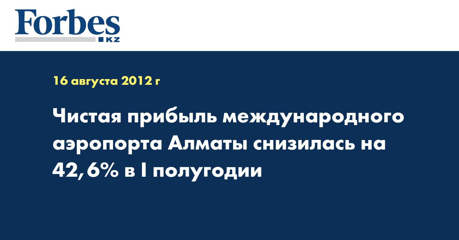 Чистая прибыль АО «Международный аэропорт Алматы» в I полугодии составила Т1,62 млрд, что на 42,6% меньше, чем в соответствующем периоде 2011 года, указывается в консолидированной финансовой отчетности компании, передает КазТАГ.