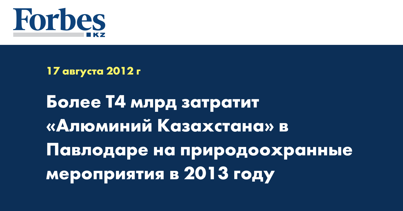 «Согласно плану мероприятий по охране окружающей среды, АО «Алюминий Казахстана» намерено направить (на природоохранные мероприятия в 2013 г. – КазТАГ) 4 млрд 171 млн, в текущем году - 3 млрд», - сказал он в ходе общественных слушаний в пятницу.
