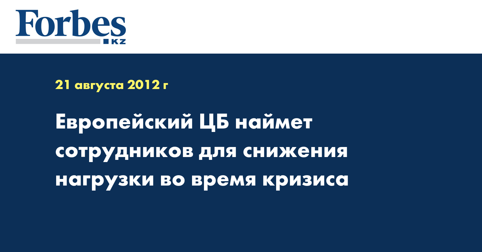 Европейский Центробанк согласился принять в штат 40 дополнительных сотрудников для снижения рабочей нагрузки на фоне долгового кризиса в еврозоне. Об этом сообщает Agence France-Presseсо ссылкой на заявление представителя ЕЦБ. Всего в регуляторе трудятся 2,6 тысячи человек, из них 1,2 тысячи - на постоянном контракте, передает Lenta.ru.