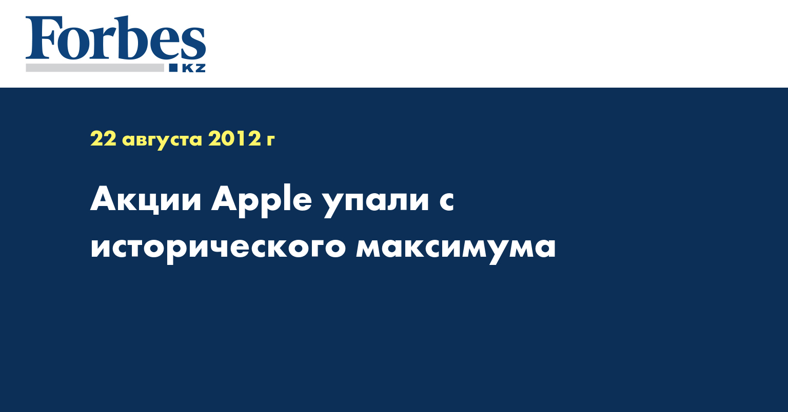 Акции Apple упали после достижения исторического максимума в ходе торговой сессии 21 августа на бирже NASDAQ. В начале торгов они обновили рекорд, поднявшись до 674 долларов за акцию, но затем потеряли более двух процентов стоимости, опустившись к отметки 655 долларов, передает Lenta.ru.