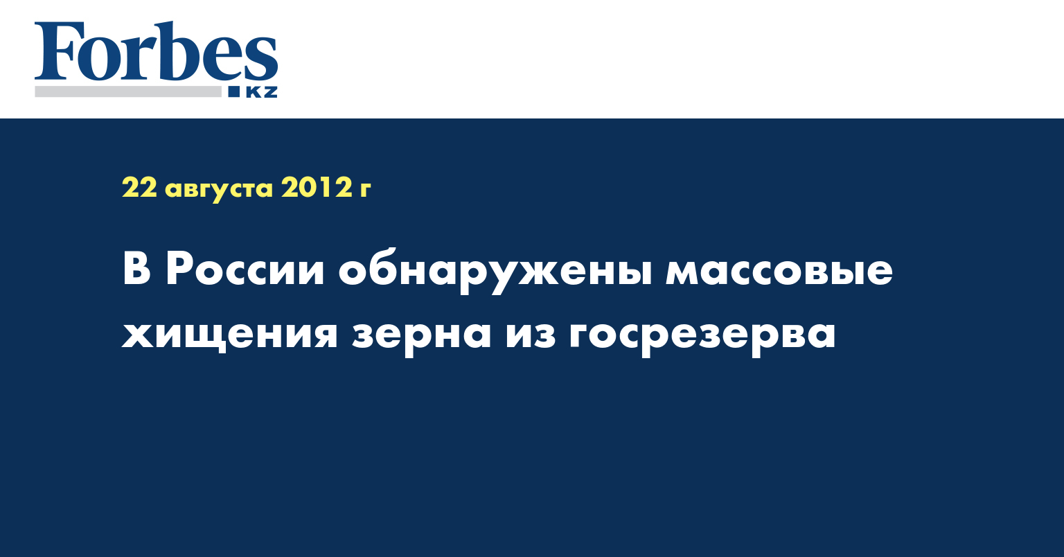 "Объединенная зерновая компания" пожаловалась на массовые хищения из государственного резерва зерна в Сибири, сообщает РИА Новости. Руководитель сибирского представительства компании Сергей Скулкин посетовал на то, что в некоторых регионах зерно бесконтрольно расхищается, а также хранится с нарушениями правил, передает Lenta.ru.