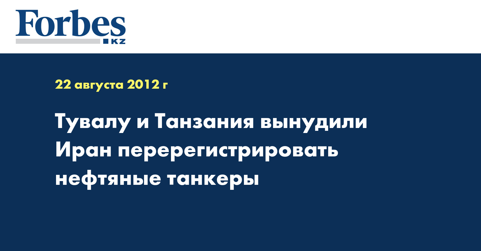 Иран начал поиск новых "удобных флагов" для своих нефтяных танкеров после того, как Танзания и Тувалу отказали в разрешении использовать свои флаги. Об этом сообщает The Financial Times. В последние три месяца Исламская республика заменила флаги на половине своего крупного танкерного флота, состоящего из судов вместимостью 2 миллиона баррелей, передает Lenta.ru.