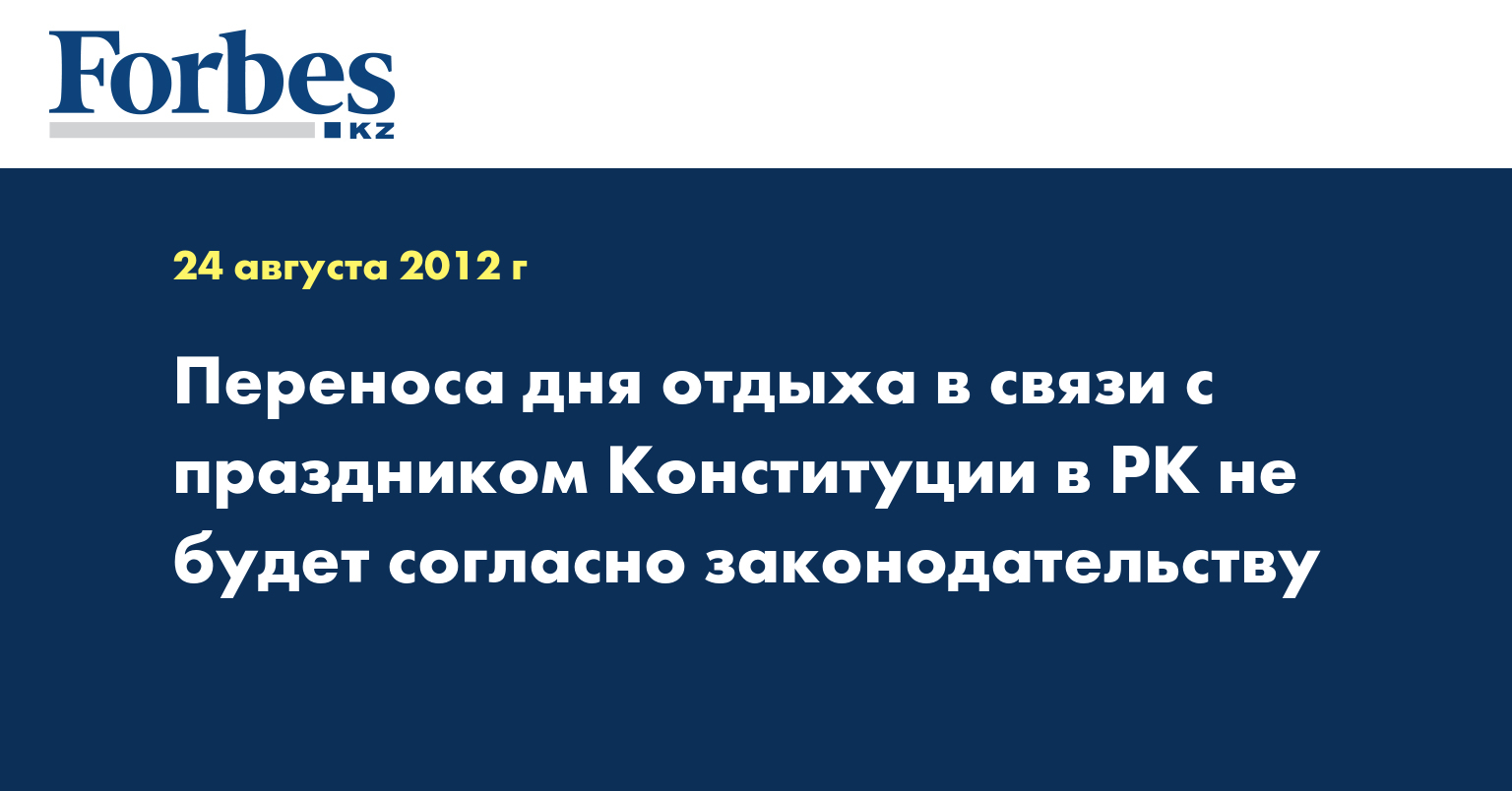 Переноса дня отдыха в связи с праздником Конституции в РК не будет согласно действующему закону «О праздниках», передает корреспондент агентства КазТАГ.