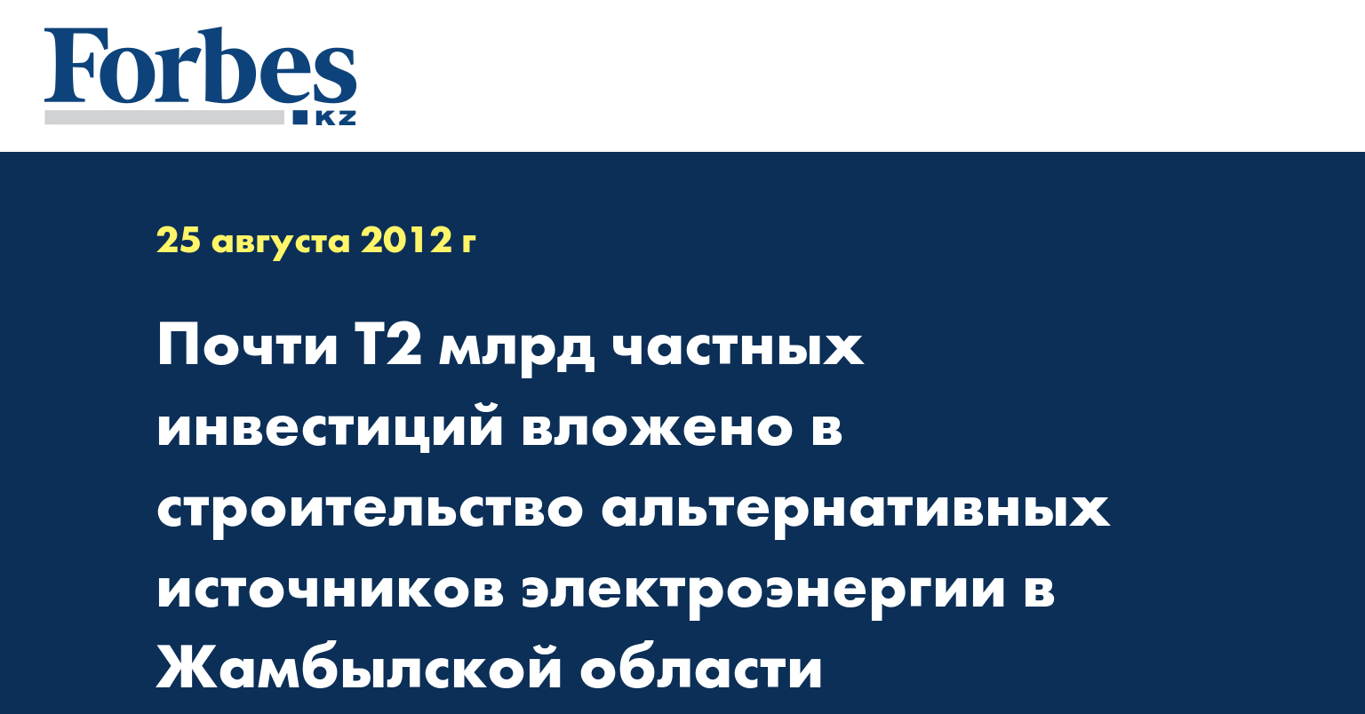 В Жамбылской области в строительство новых альтернативных источников электроэнергии вложено почти Т2 млрд частных инвестиций, сообщил аким области Канат Бозумабев, передает КазТАГ.