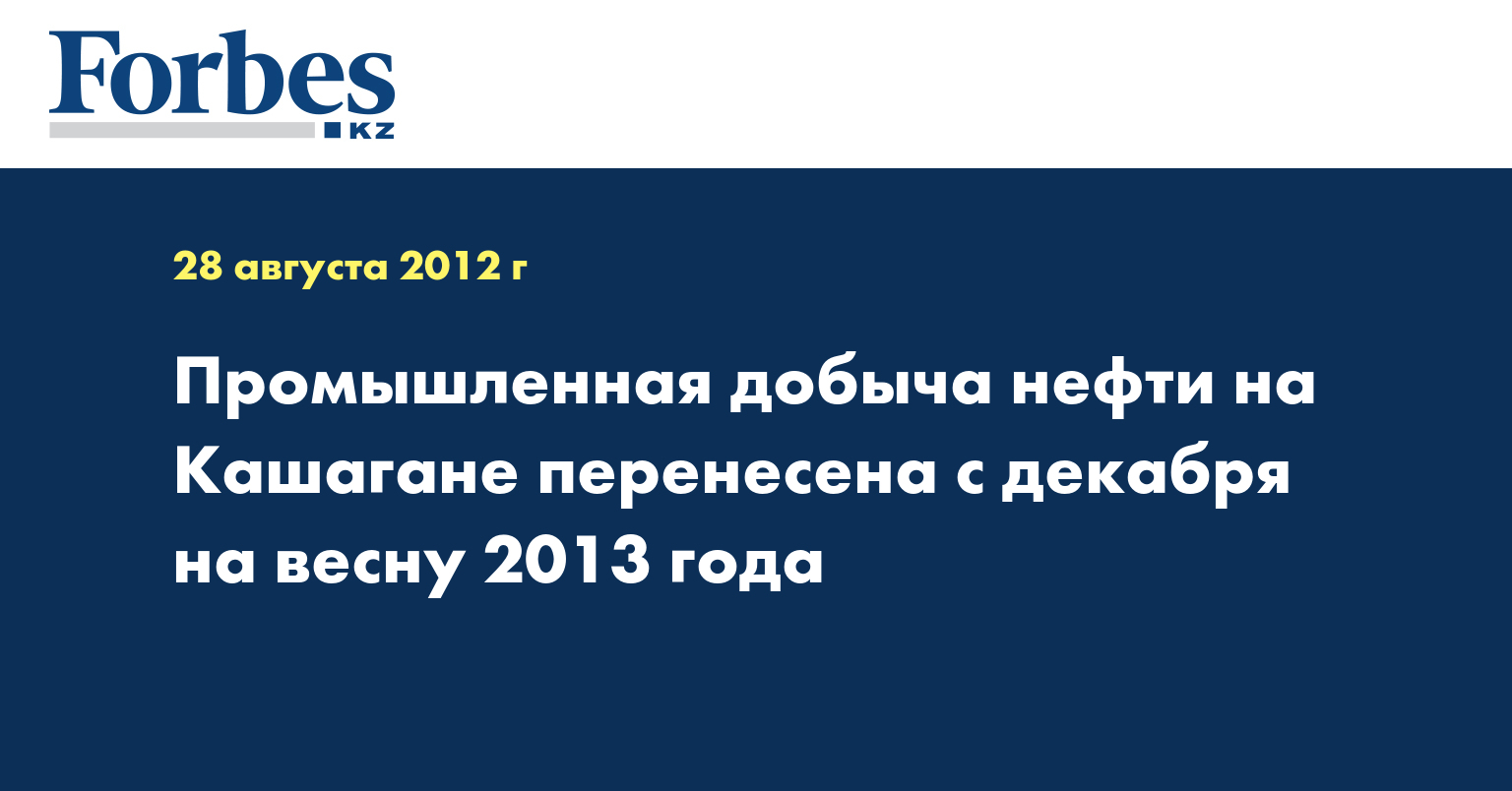 Начало добычи нефти на Кашагане переносилось несколько раз. Консорциум иностранных компаний во главе с Eni первоначально обещал гарантировать коммерческую добычу в 2008 году, затем сроки был сдвинуты на 2011 год. Позже был подписан еще один меморандум, по которому сроки промышленной добычи нефти на месторождении Кашаган на шельфе Каспия были перенесены на 2013 год. Правительство Казахстана и консорциум договорились также о стабильности налогового режима для контракта на разработку Кашагана.