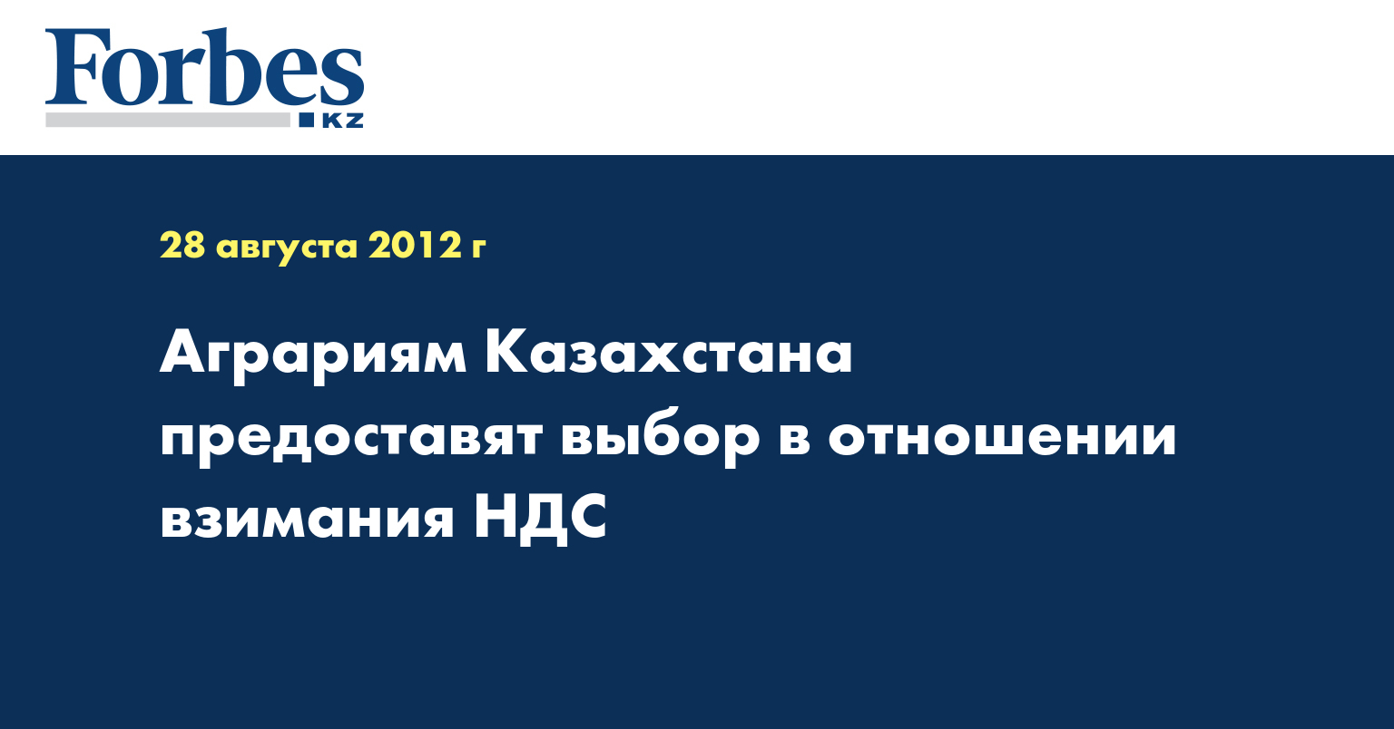 Аграриям Казахстана предоставят выбор в отношении взимания налога на добавленную стоимость (НДС), сообщил министр экономического развития и торговли (МЭРТ) Бакытжан Сагинтаев, передает КазТАГ.