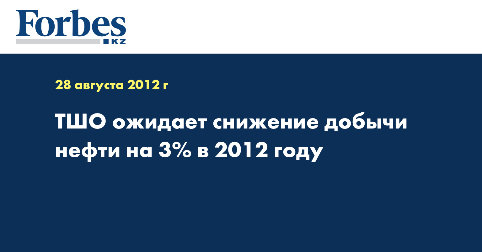 Напомним, по итогам 2011года ТШО добыло 25,8 млн тонн нефти. Таким образом, по итогам 2012 года ожидается снижение добычи нефти компанией на 3%