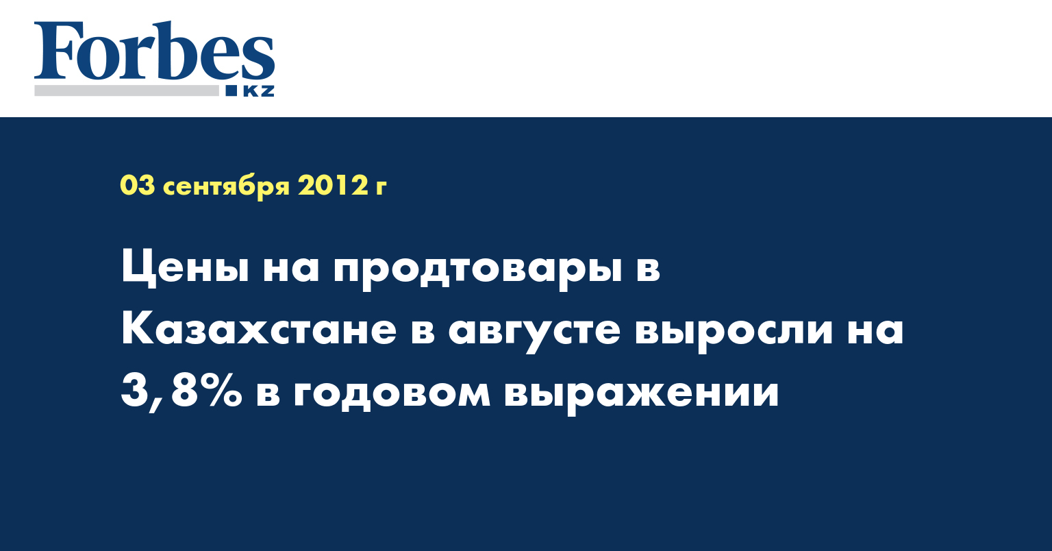 Цены на продовольственные товары в Казахстане в августе выросли на 3,8% по сравнению с соответствующим месяцем 2011 года, указывается в сообщении агентства РК по статистике, передает КазТАГ.