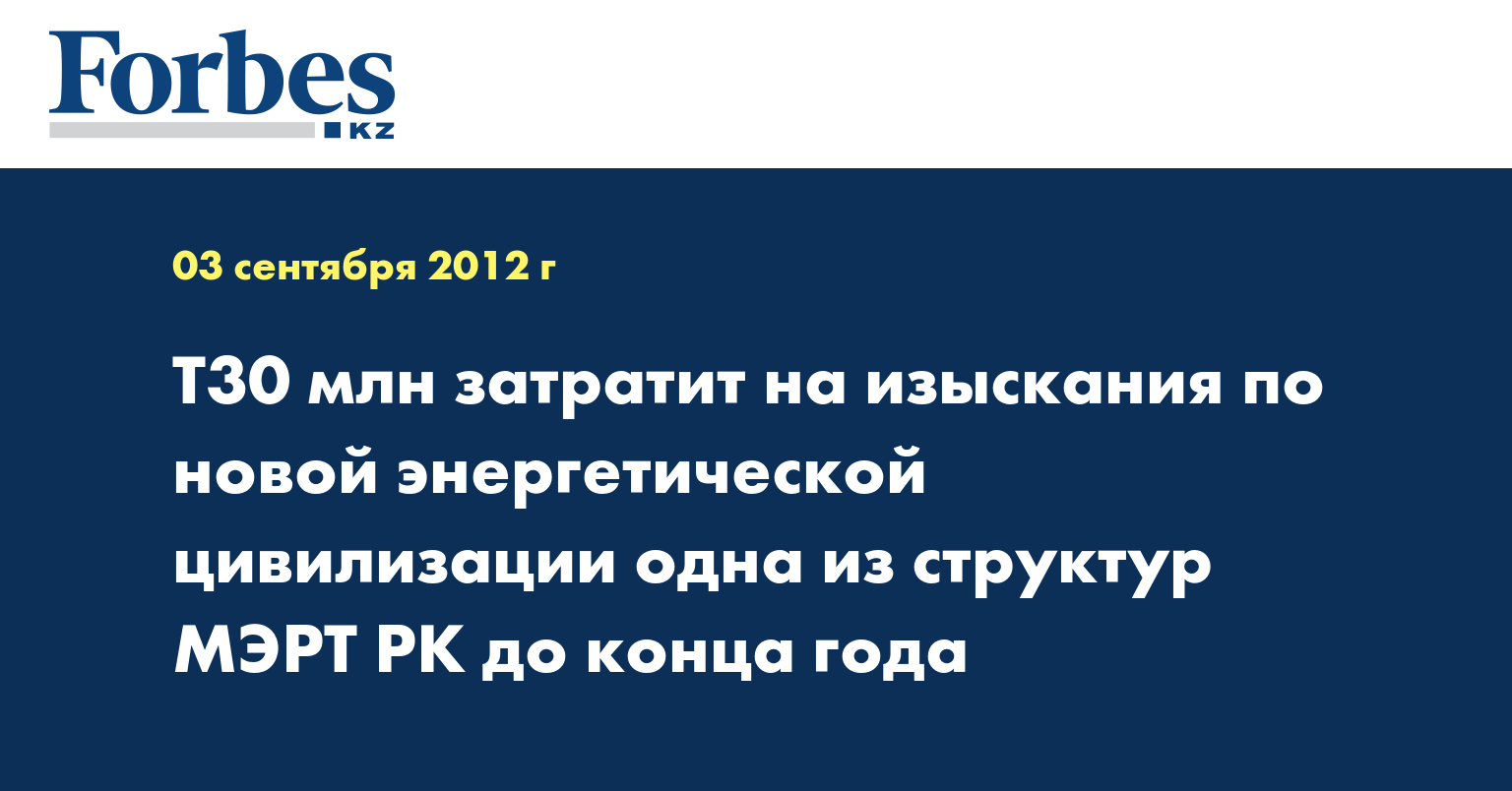 Т30 млн потратит институт экономических исследований МЭРТ РК на изыскания по новой энергетической цивилизации в 2012 году, следует из помещенных на сайте названного института данных, передает КазТАГ.