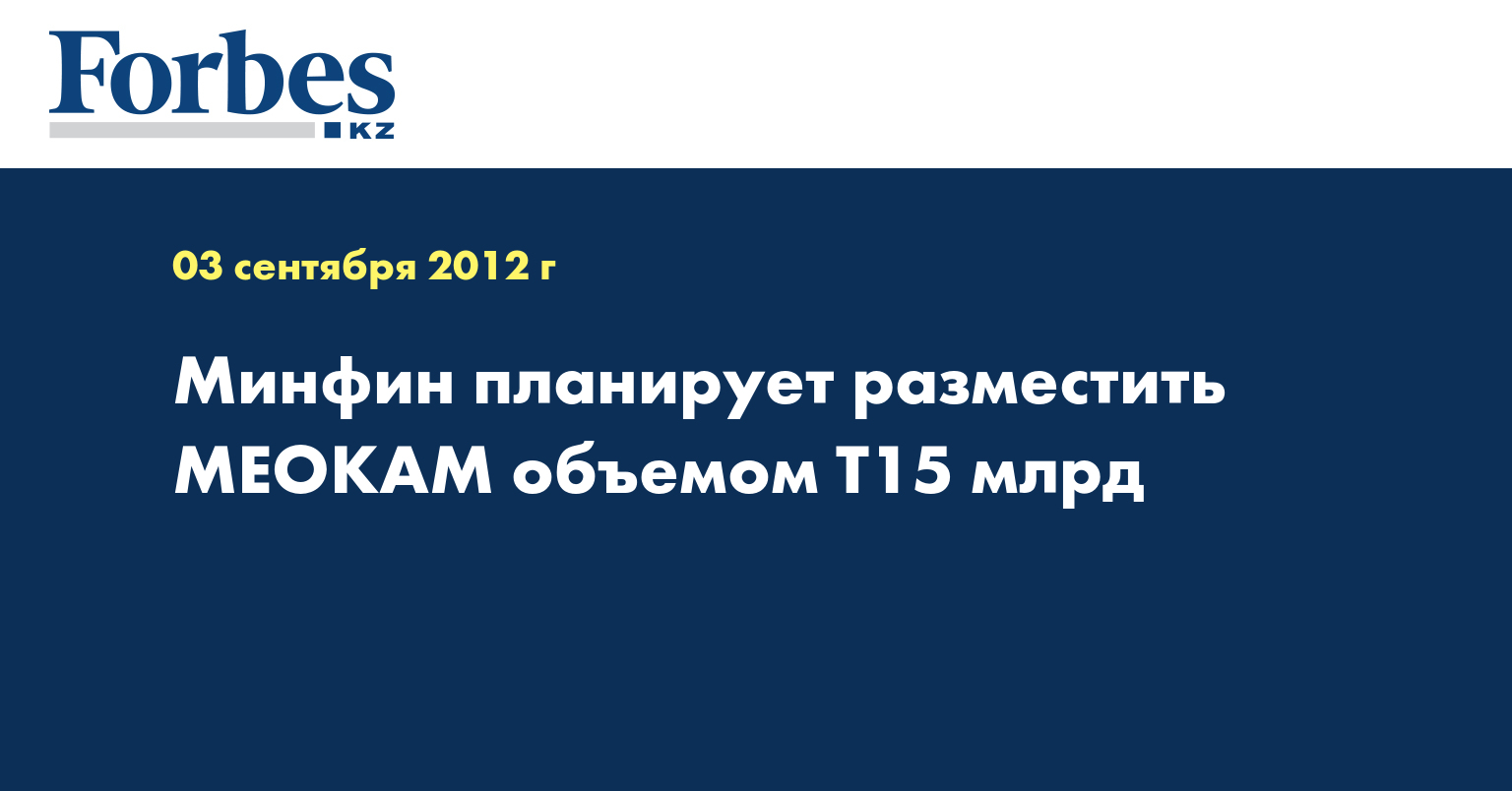 В торговой системе Казахстанской фондовой биржи (KASE) в среду состоятся специализированные торги по размещению государственных среднесрочных казначейских обязательств министерства финансов РК (МЕОКАМ) общим объемом Т15 млрд, говорится в сообщении KASE, передает КазТАГ.