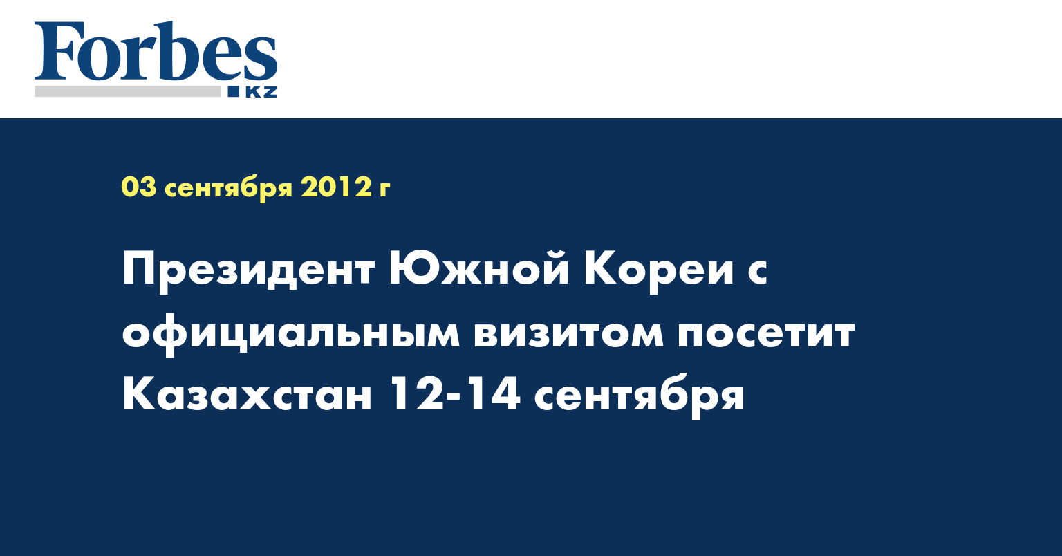 «12-14 сентября по приглашению президента Казахстана Нурсултана Назарбаева состоится официальный визит президента Республики Корея Ли Мён Бака в Казахстан. В ходе визита запланированы встречи с высшим руководством страны, в рамках которых стороны намерены обсудить состояние и перспективы двустороннего сотрудничества в таких областях, как энергетика, обрабатывающая промышленность, высокие технологии, сельское хозяйство, культура, образование и туризм. Кроме того, будут рассмотрены актуальные международные и региональные проблемы», - сказал он на брифинге в понедельник.