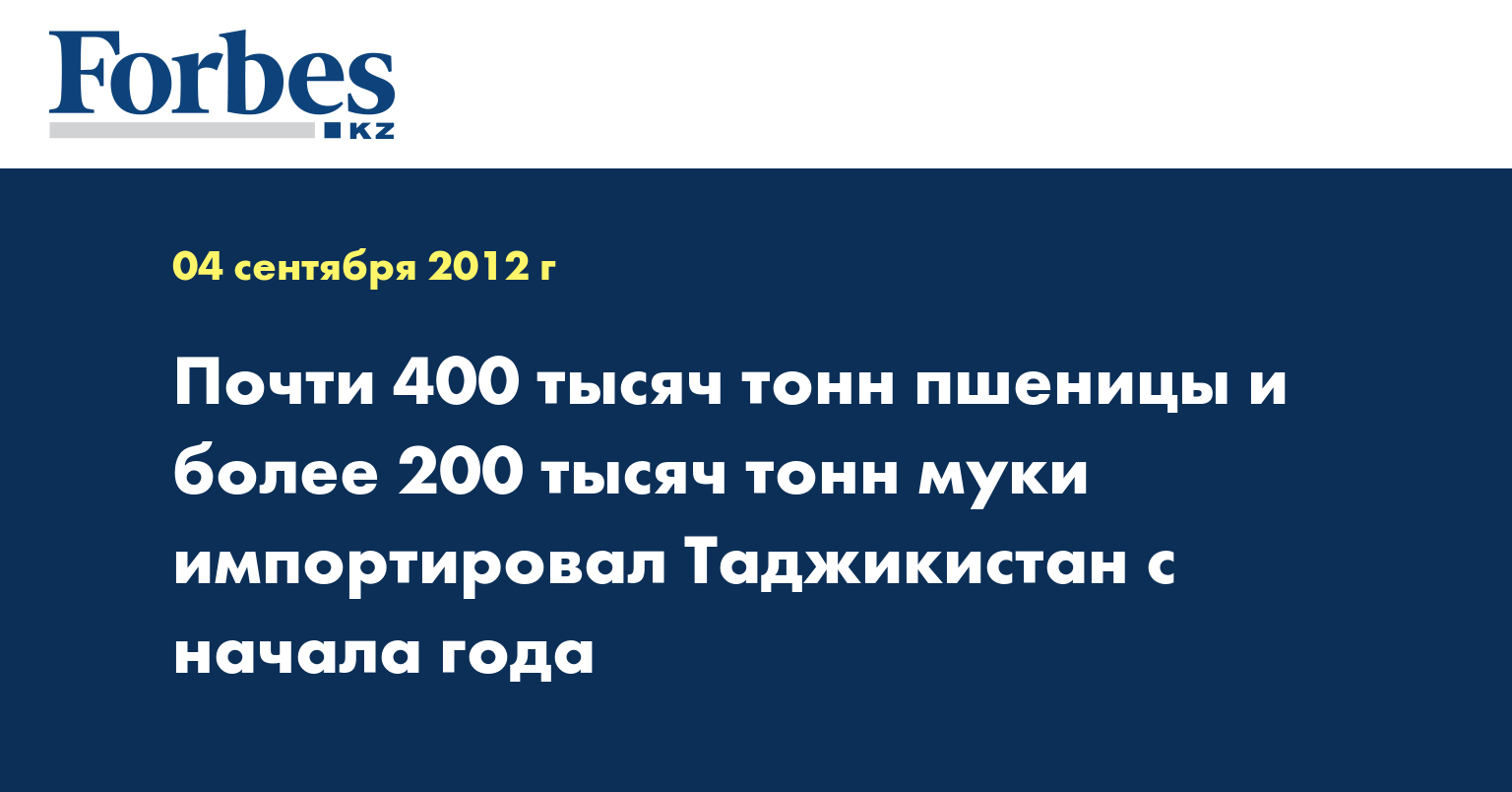 Главным поставщиком зерна и муки в Таджикистан является Казахстан, занимая 96% рынка. Остальное – доля российских производителей.