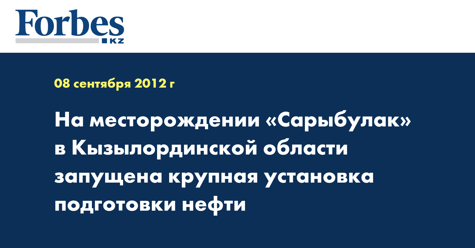 В Кызылординской области на месторождении «Сарыбулак» запущена крупная установка подготовки нефти, сообщили в областном управлении предпринимательства и промышленности, передает КазТАГ.