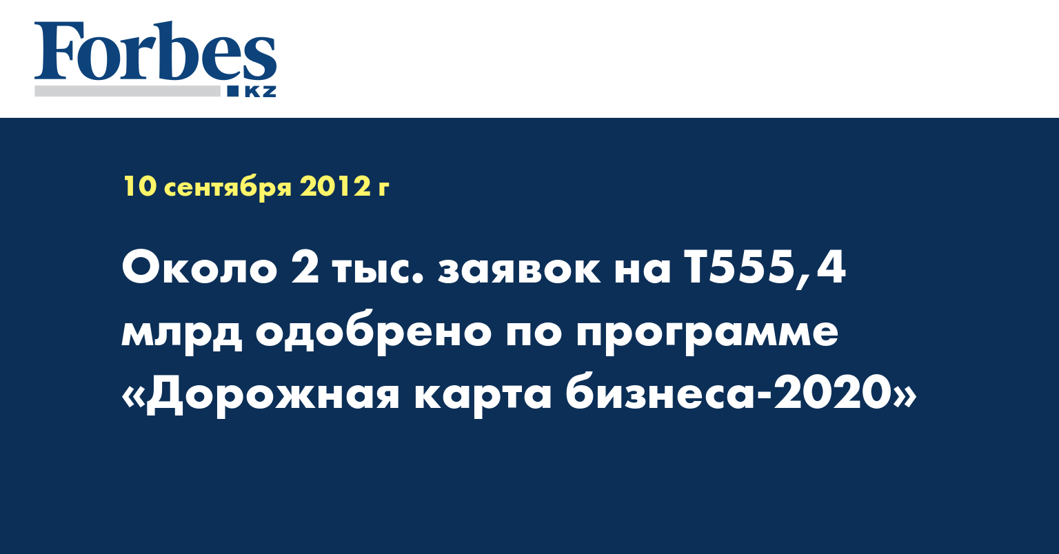 1904 заявки на Т555,4 млрд одобрено по трем направлениям программы субсидирования «Дорожной карты бизнеса-2020», сообщила пресс-служба министерства экономического развития и торговли РК, передает КазТАГ.
