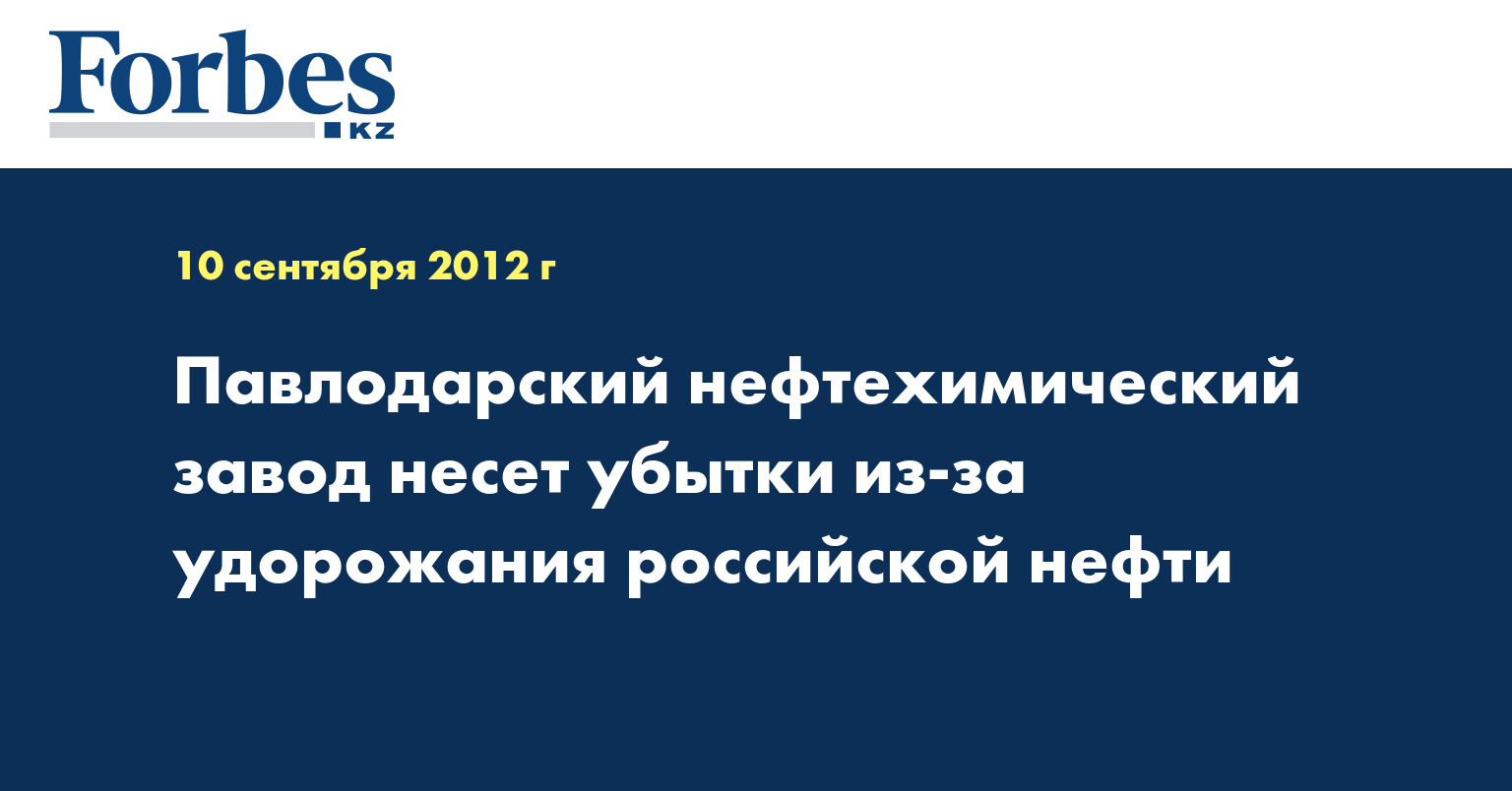 В связи с удорожанием российской нефти Павлодарский нефтехимический завод (ПНХЗ) несет убытки, сообщил генеральный директор предприятия Шурат Данбай.