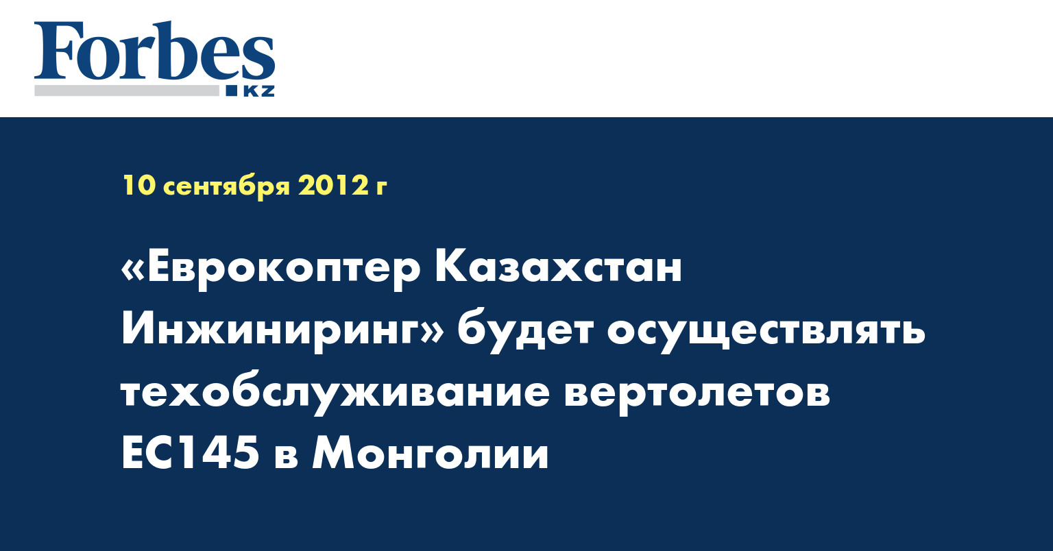 ТОО «Еврокоптер Казахстан Инжиниринг» будет осуществлять техническое обслуживание вертолетов ЕС145 в Монголии, указывается в сообщении национального агентства по экспорту и инвестициям Kaznex Invest, передает КазТАГ.