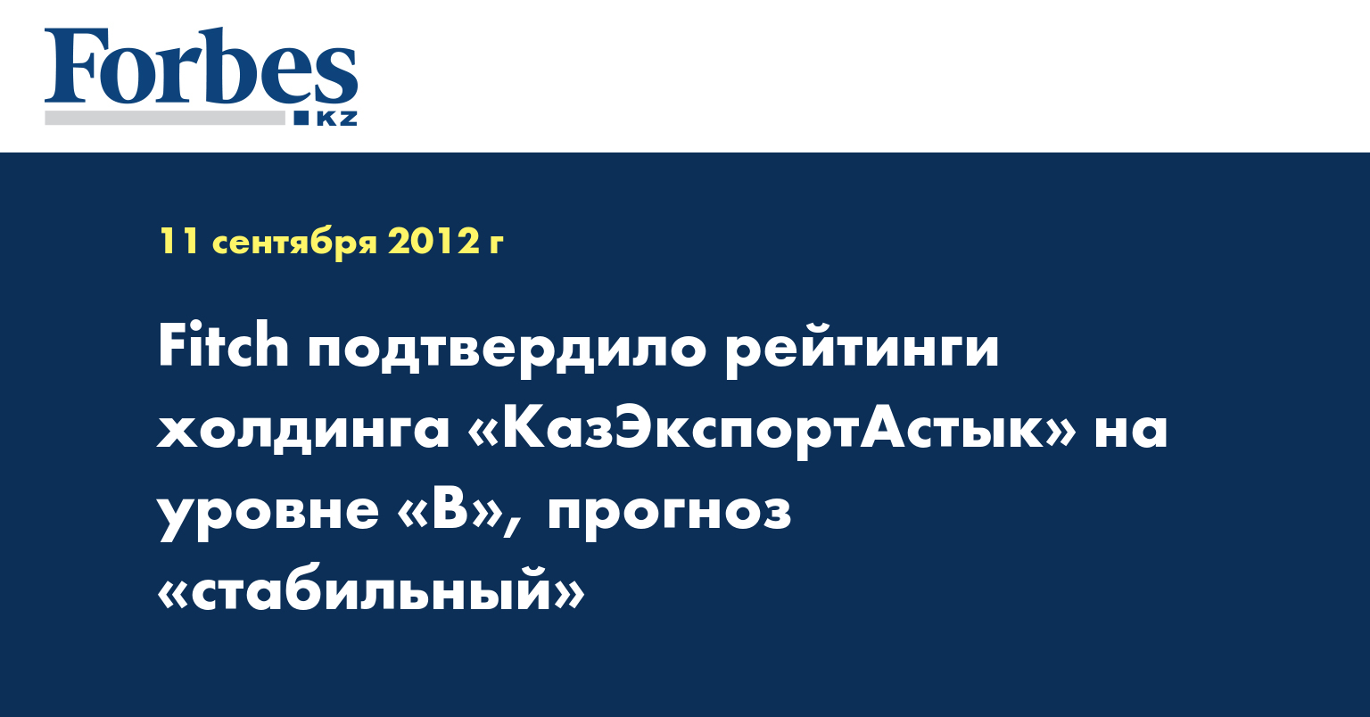«Fitch подтвердило рейтинги АО «Холдинг «КазЭкспортАстык»: долгосрочные рейтинги дефолта эмитента (РДЭ) в иностранной и национальной валюте на уровне «B» и национальный долгосрочный рейтинг «BB(kaz)» со «Стабильным» прогнозом», - говорится в пресс-релизе.