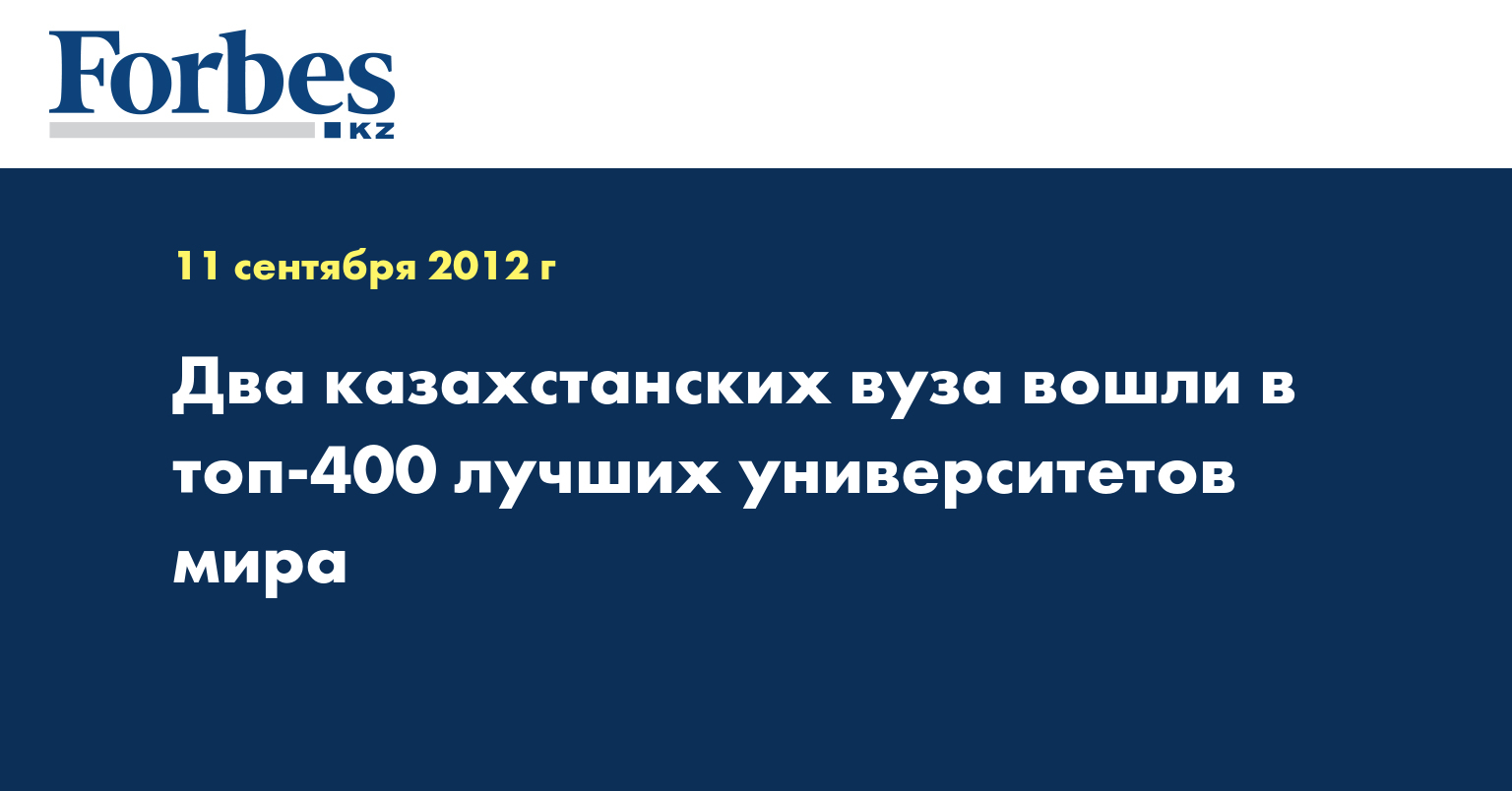 «Два университета из Казахстана впервые вошли в топ- 400 лучших университетов, тем самым показав большой прогресс с 2009 года, когда они впервые вошли в рейтинг и занимали позиции в самом низу таблиц», - цитируются слова регионального директора исследовательского центра QS Зои Зайцевой в распространенном сообщении.