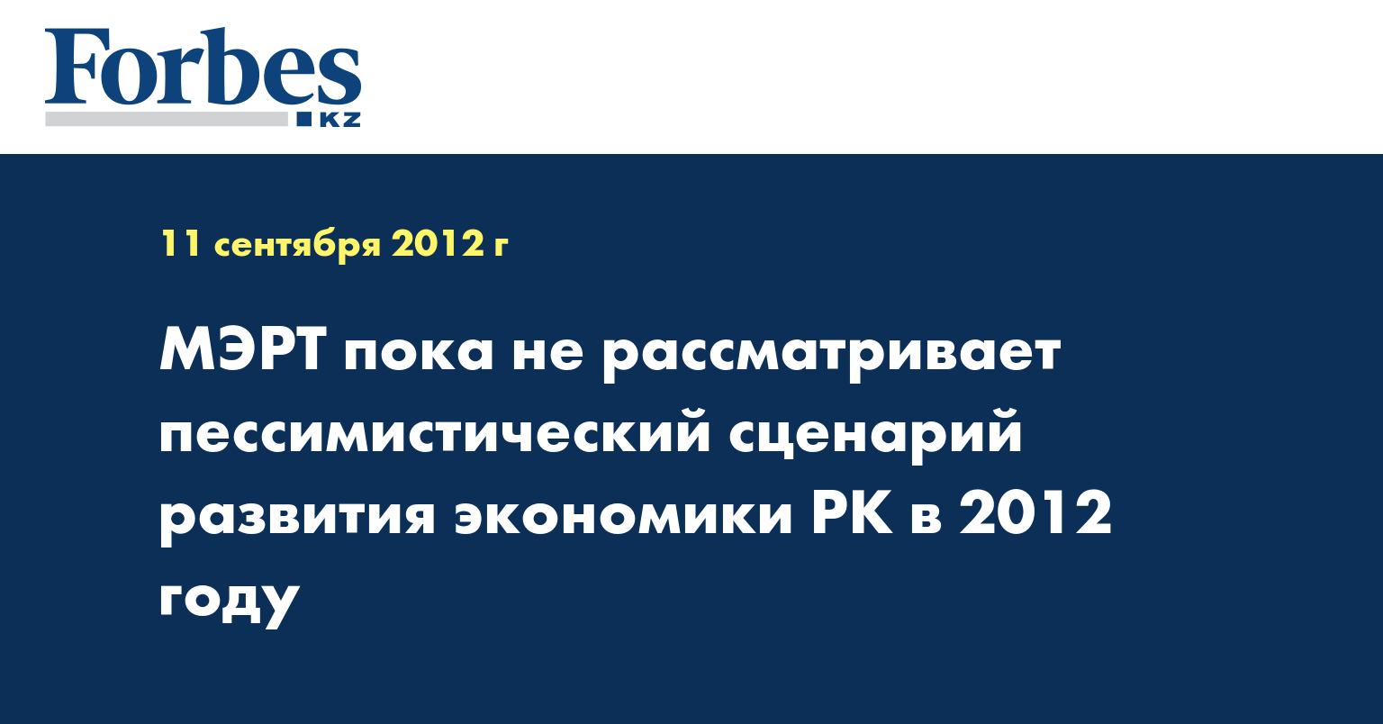Б. Сагинтаев сообщил, что МЭРТ снизило прогноз роста ВВП до 6% в 2012 году в связи с турбулентностью на крупнейших внешних рынках, но продолжает «рассматривать» текущую ситуацию. По его словам, данный сценарий развития казахстанской экономики является базовым.