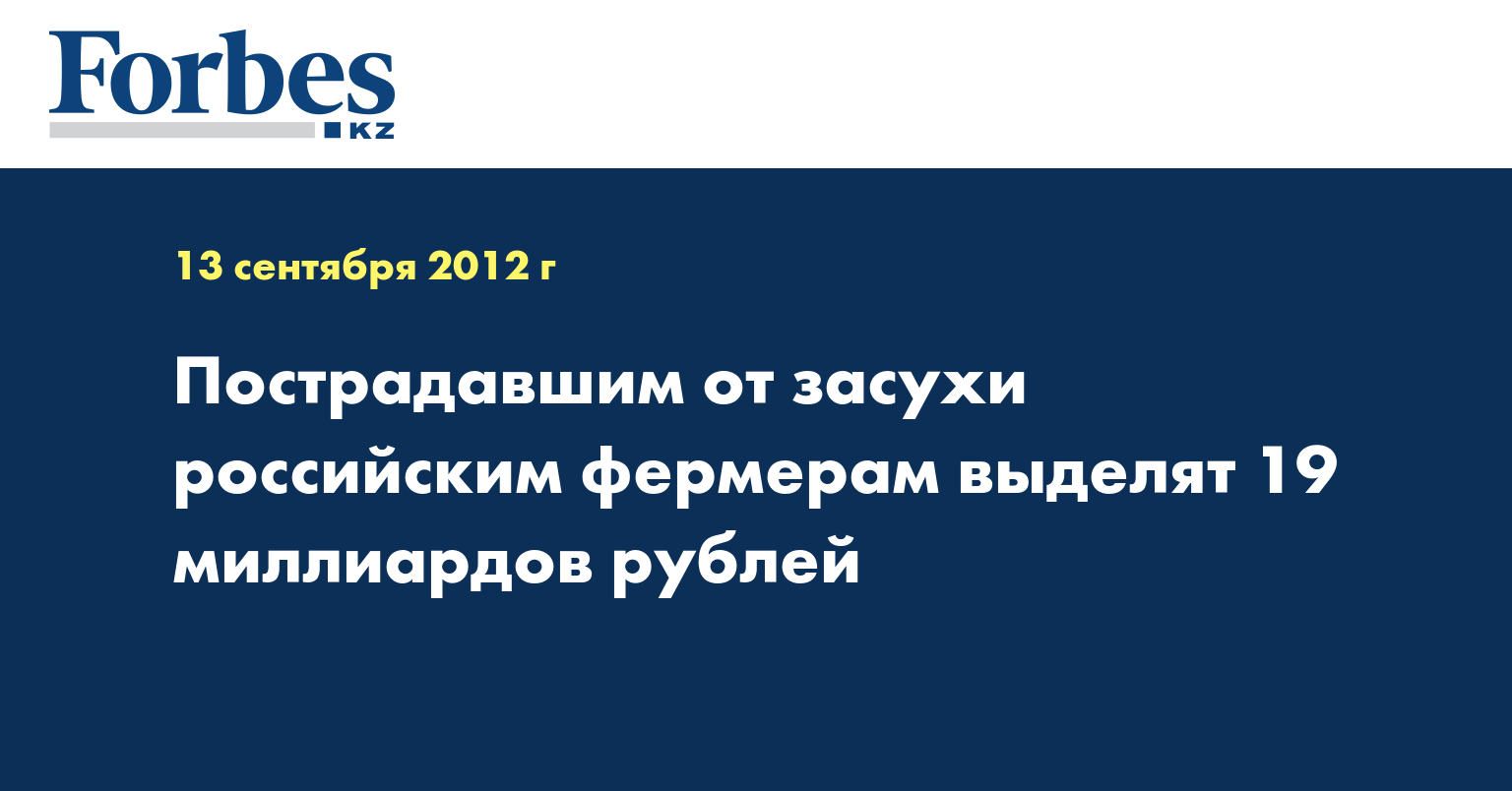 По оценкам региональных властей, засуха 2012 года нанесла российским фермерам ущерб на общую сумму в 37,5 миллиарда рублей; из-за погодных условий погибли посевы на площади в 5,99 миллиона гектаров. Ранее сообщалось, что в правительство с просьбой о помощи обратились десять регионов страны.