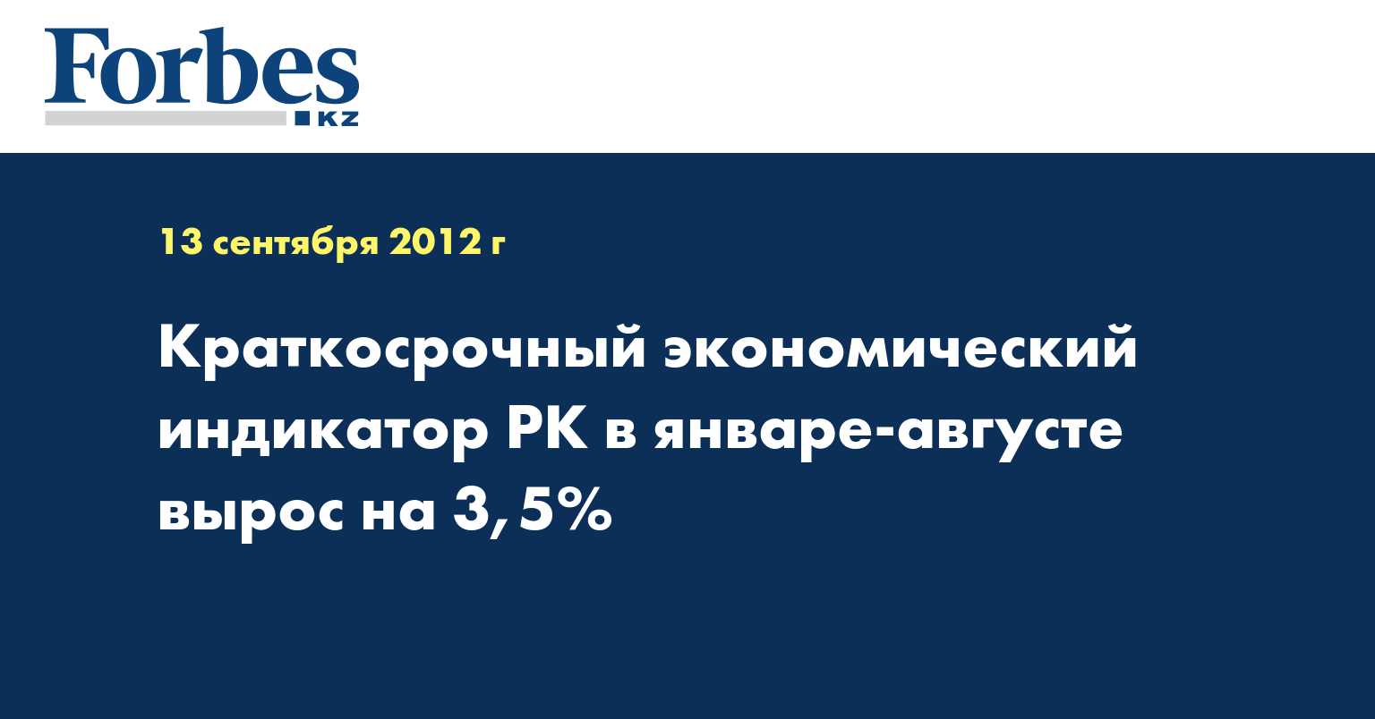 Рост краткосрочного экономического индикатора Казахстана в январе-августе 2012 года по сравнению с аналогичным периодом 2011 года составил 3,5%, указывается в сообщении агентства РК по статистике, передает КазТАГ.