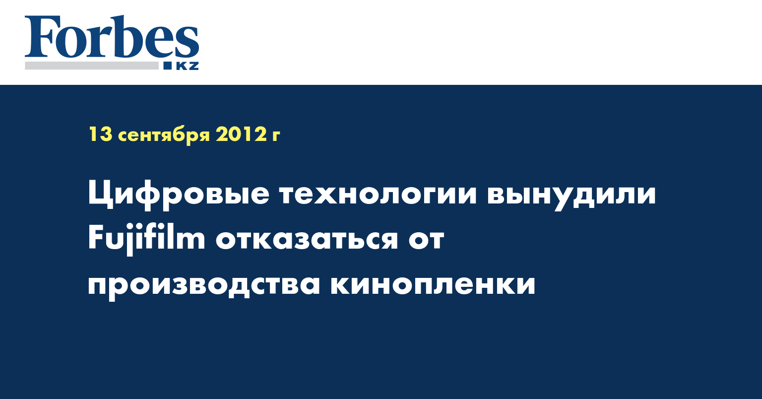 В Fujifilm пытались сокращать издержки, но в итоге решили остановить производство к весне 2013 года. Компания будет производить только специальную пленку для создания резервных копий старого кино. Fujifilm выпускала кинопленку с 1934 года.