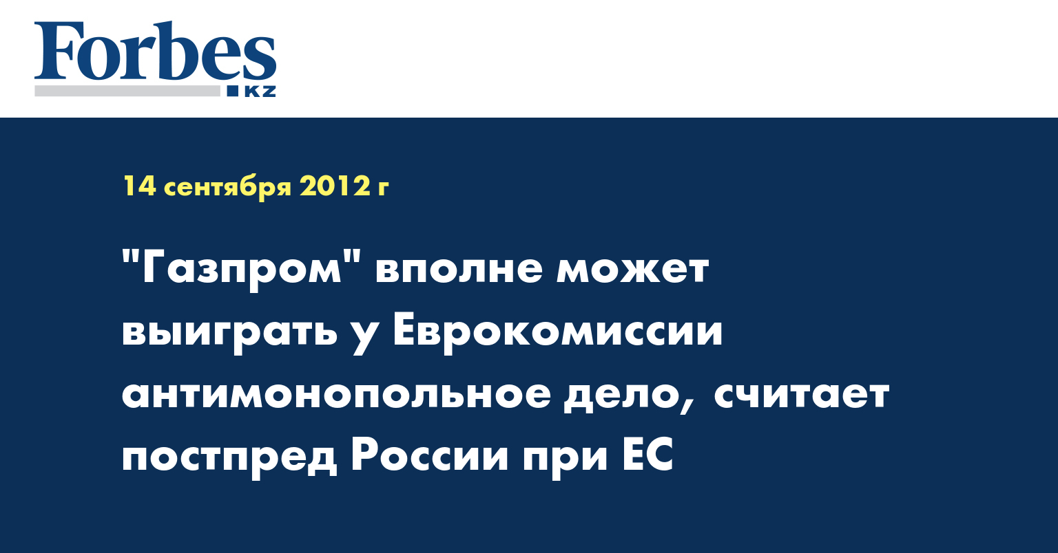"Это расследование вполне может завершиться в пользу "Газпрома". Такие прецеденты уже были, в том числе и в российской практике, - сказал российский постпред. - Хотелось бы, чтобы это дело излишне не политизировалось и не обрастало лишними эмоциями с обеих сторон".