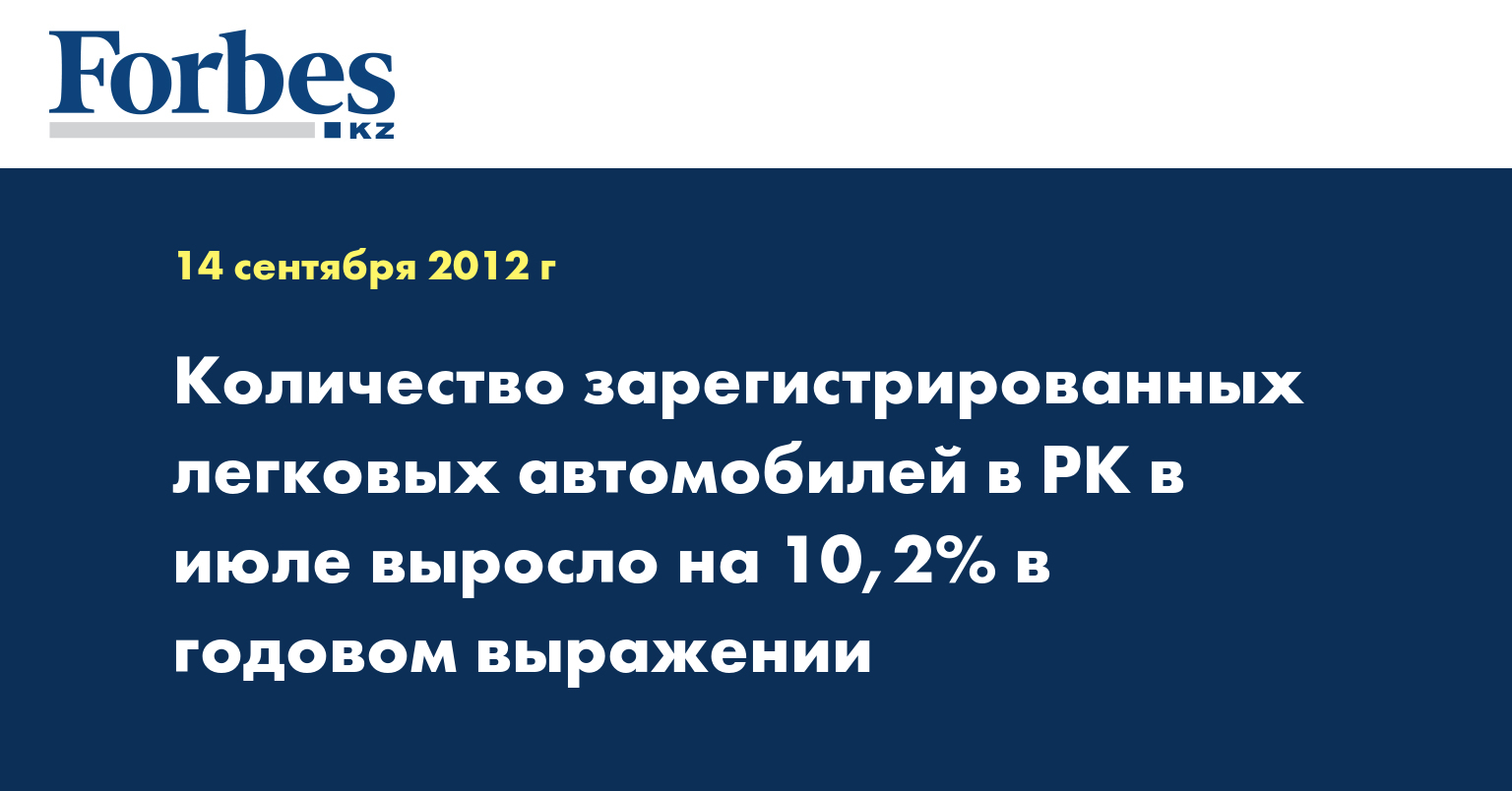 Количество зарегистрированных легковых автомобилей в Казахстане в июле составило 40 041 единиц, что на 10,2% больше, чем в соответствующем периоде 2011 года, сообщила пресс-служба агентства РК по статистике, передает КазТАГ.