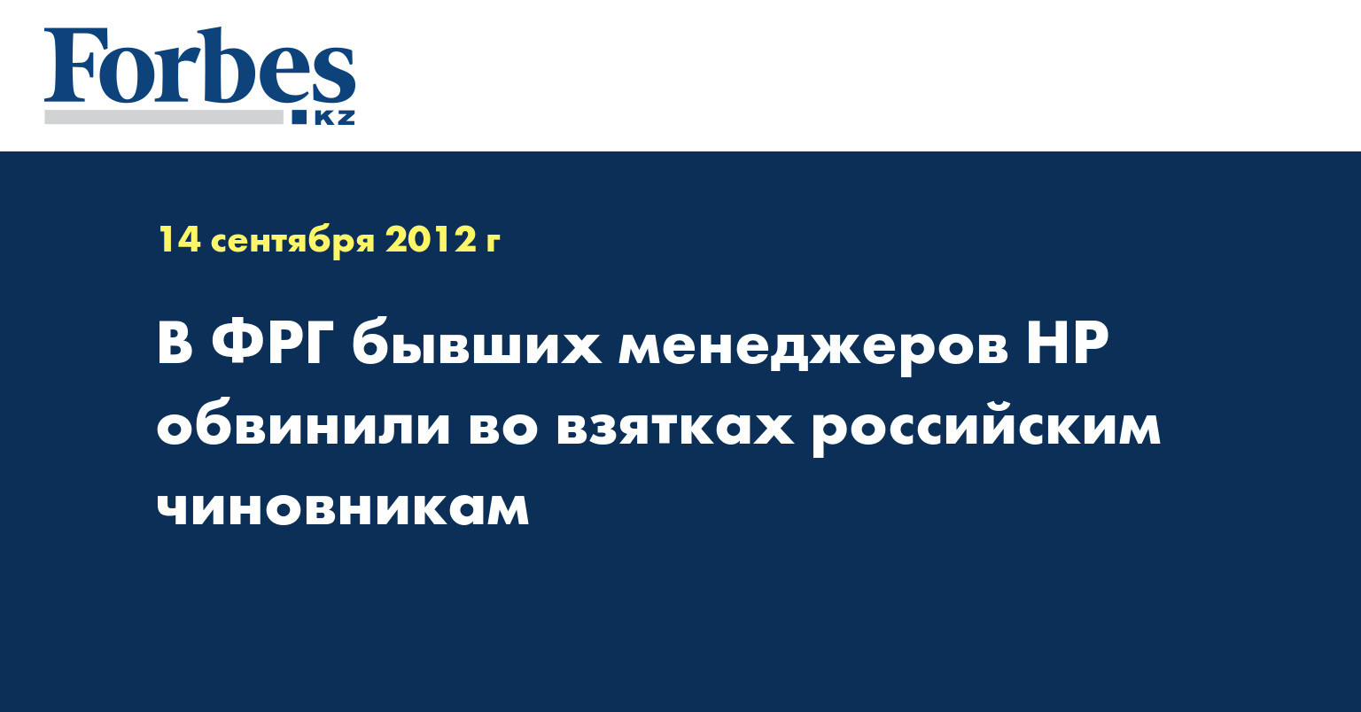 По данным немецких гособвинителей, бывший филиал Hewlett-Packard в Германии - Hewlett-Packard ISE GmbH - заплатил российским чиновникам взятку, чтобы выиграть тендер на поставку компьютеров в Генпрокуратуру РФ на 35 миллионов евро.