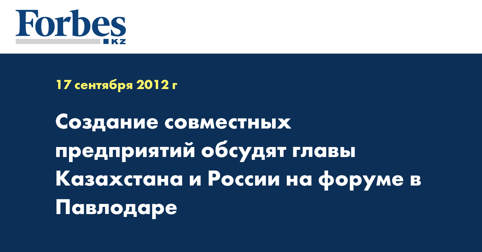 Вопросы создания совместных предприятий обсудят главы Казахстана и России на форуме межрегионального сотрудничества, который откроется 19 сентября в Павлодаре, сообщил официальный представитель правительства Ержан Ашикбаев, передает КазТАГ.