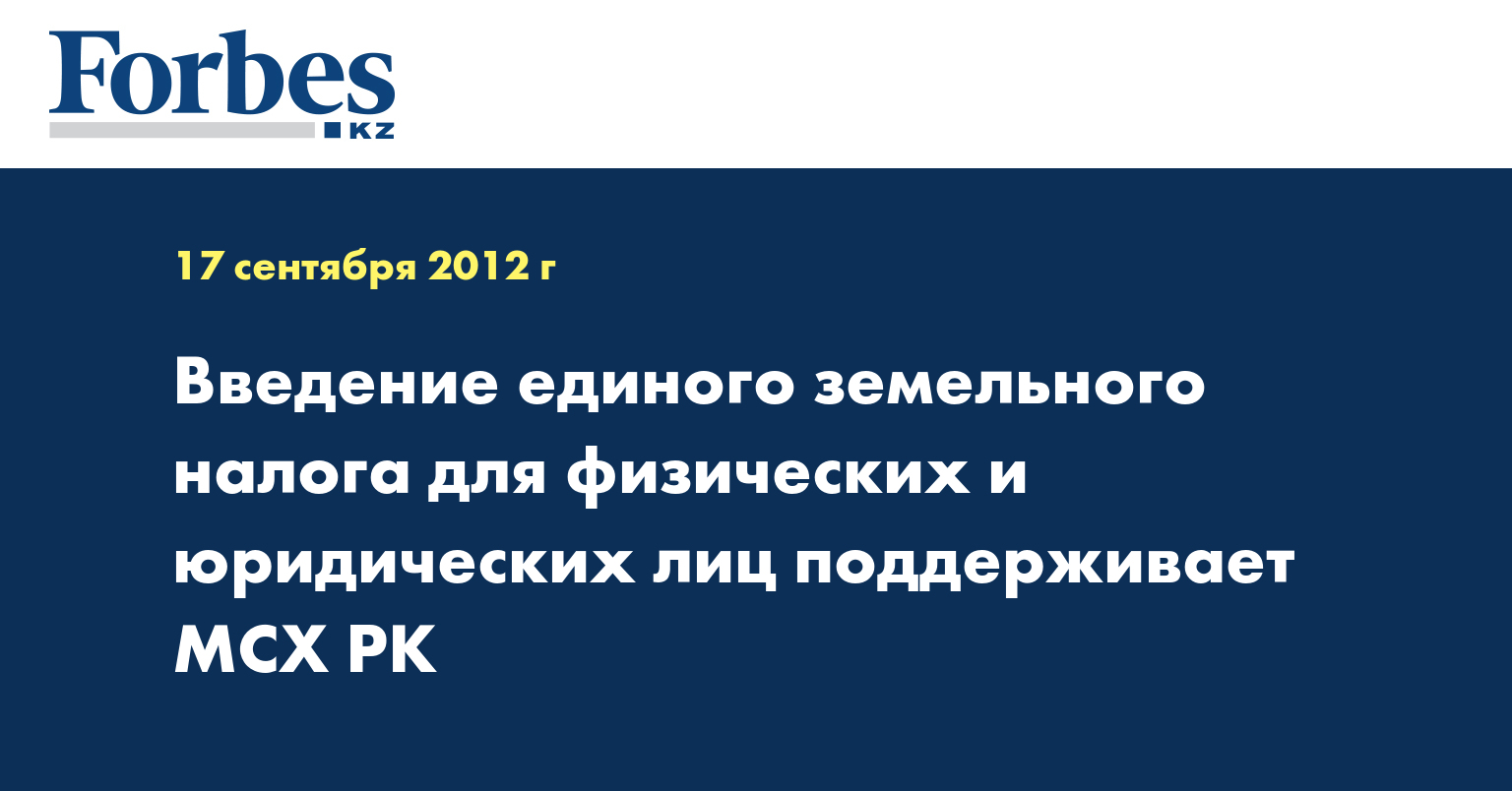 Министерство сельского хозяйства выступает за введение единого земельного налога для физических и юридических лиц, сообщил глава ведомства Асылжан Мамытбеков, передает КазТАГ.