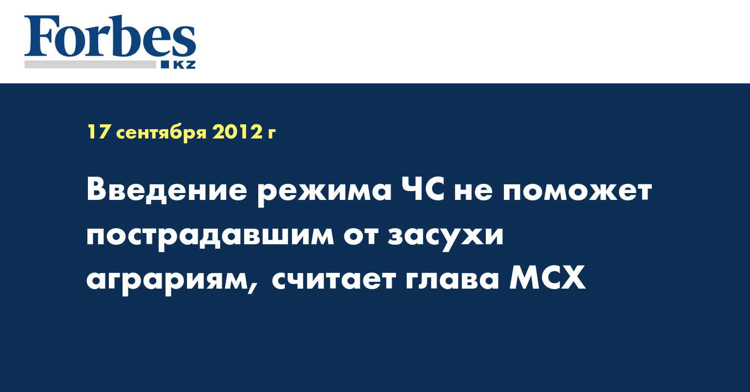 Как сообщалось ранее, «Союз фермеров Казахстана» обратился к правительству и президенту с просьбой объявить режим ЧС в ряде регионов страны из-за погубившей урожай засухи. Эксперты союза фермеров Казахстана предрекают финансовый крах для многих аграриев с консервацией, а то и ликвидацией производств.