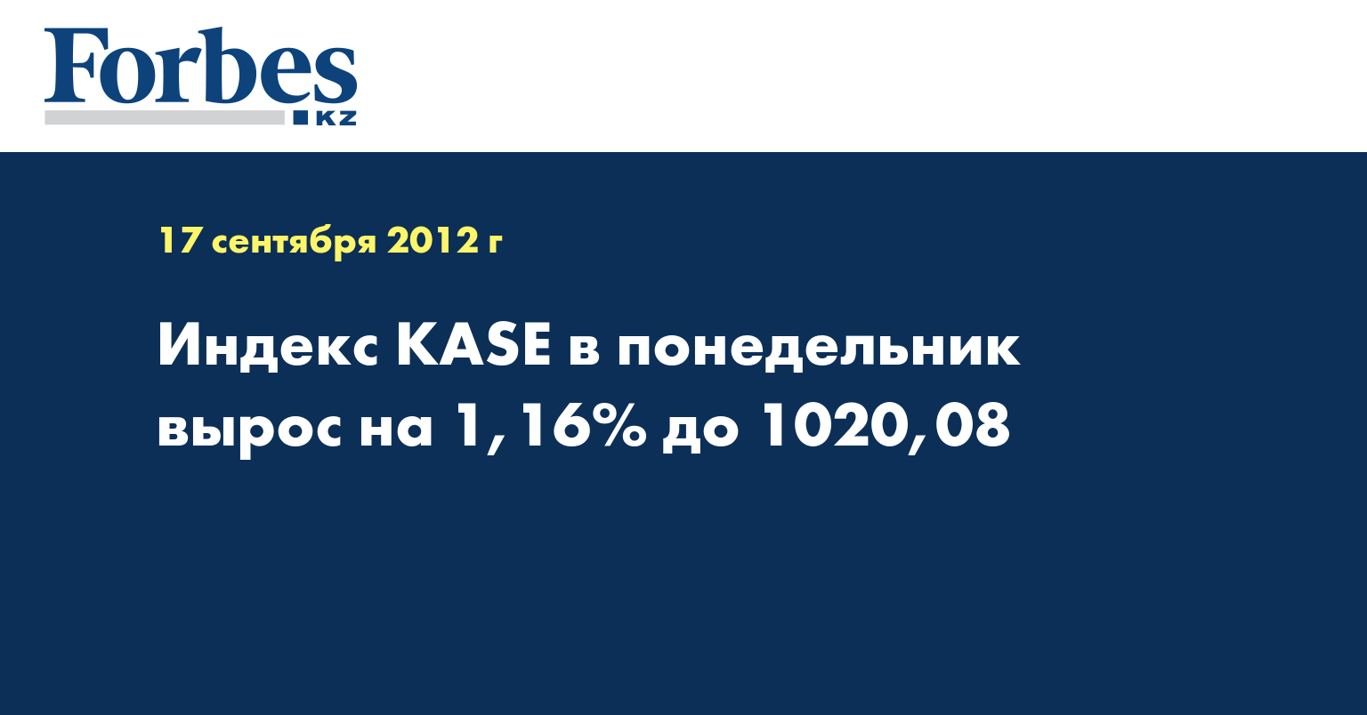 По итогам торгов акциями на Казахстанской фондовой бирже (KASE) в понедельник значение индекса KASE выросло на 1,16% - с 1008,34 до 1020,08, сообщает КазТАГ.