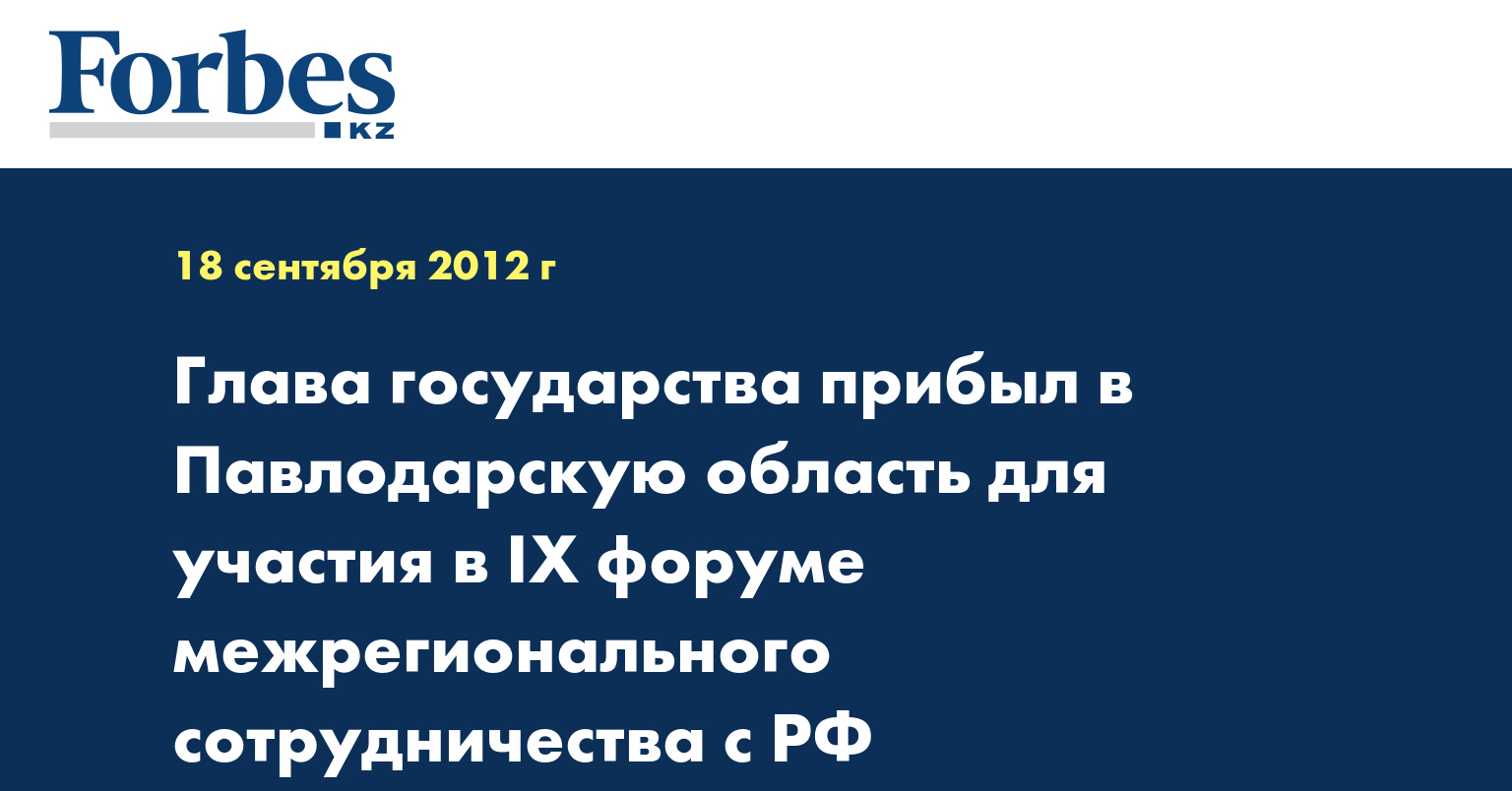 Как сообщалось, ІХ форум межрегионального (приграничного) сотрудничества Казахстана и России начнется 18 сентября в Павлодаре. Ожидается, что 19 сентября состоится встреча глав двух государств – президента РК Нурсултана Назарбаева и президента РФ Владимира Путина.