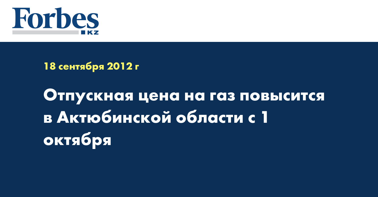 В Актюбинской области с 1 октября повысится отпускная цена на газ, сообщили в пресс-службе Актюбинского производственного филиала АО «КазТрансГаз Аймак», передает КазТАГ.