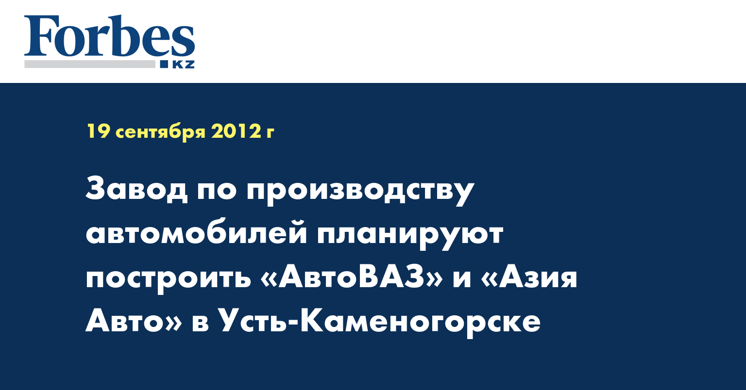 Завод по выпуску 120 тысяч автомобилей в год планируют построить в Усть-Каменогорске российский «АвтоВАЗ» и казахстанский автосборочный завод «АзияАвто», сообщил президент ОАО «АвтоВАЗ» Игорь Комаров на IX форуме межрегионального сотрудничества, передает КазТАГ.