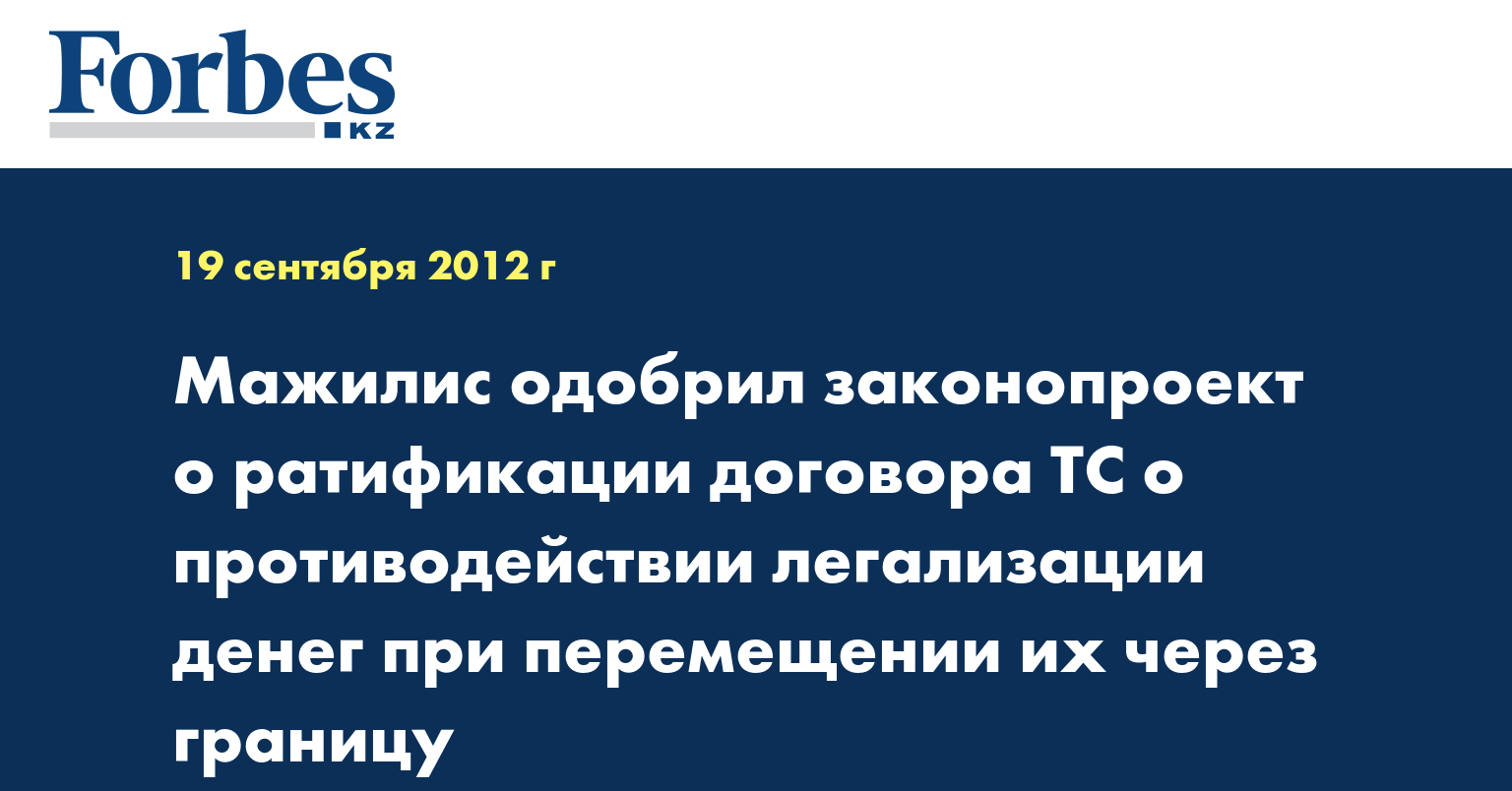 Как отмечается в заключении комитета по международным делам, обороне и безопасности мажилиса, согласно заключенного 19 декабря 2011 года в Москве договора таможенные органы во взаимодействии с правоохранительными и уполномоченными органами сторон принимают меры по противодействию легализации (отмыванию) доходов, полученных преступным путем, и финансированию терроризма при перемещении денежных средств и (или) денежных инструментов через таможенную границу ТС.